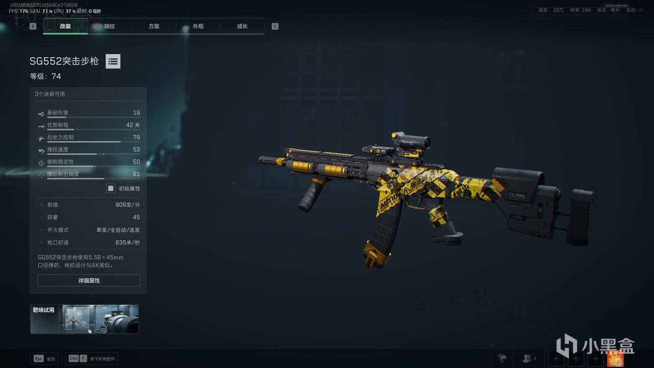 另一把很尴尬的武器SG552,即使加强过腹部伤害表现也只是把它从一坨变成了不那么臭的一坨,一把突击步枪居然要六枪躯干才能把人打死,只要蹭到四肢立马变成7BTK,这把武器唯一值得一提的是随便改改就能变成无后坐力泼水枪,毫无减益的枪管也是加分项,但底子太烂导致这把枪压根没有上限可言。建议还是去玩CAR15或者SMG45吧