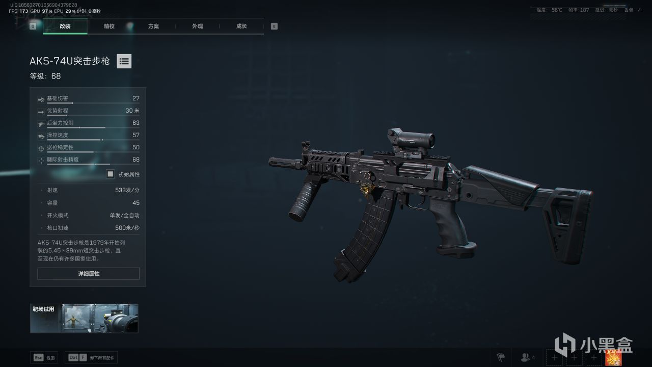 AKS74U即使是在侦查的类人武器库中也绝对算不上优秀选择,大份弹速和射程让它基本告别中距离对枪,G3同款射速在近战时更是空枪惩罚拉满,唯一优点大概是伤害数据全面对标AKM,能当个AK青春版来用,在沟槽的策划把74U枪管还回来之前我完全不推荐这把武器