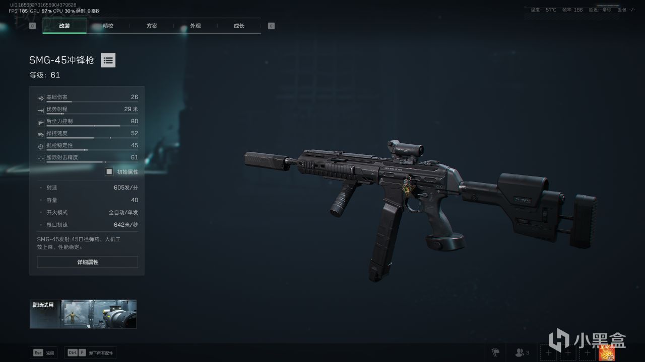 SMG45也同样是一把很值得说道的武器,策划不仅在S1对它进行了两次大加强,甚至S2还加入了新枪管来弥补贴片位不足的问题,现在这把冲锋枪稍加改装后就算不动鼠标都不会有太大上跳,第一段射程外伤害衰减倍率也是步枪同水平的85%,这代表即使超出射程也不会有过大的衰减,作为冲锋枪里的全能王,它无论是属性还是上手难度上都值得排到T1。