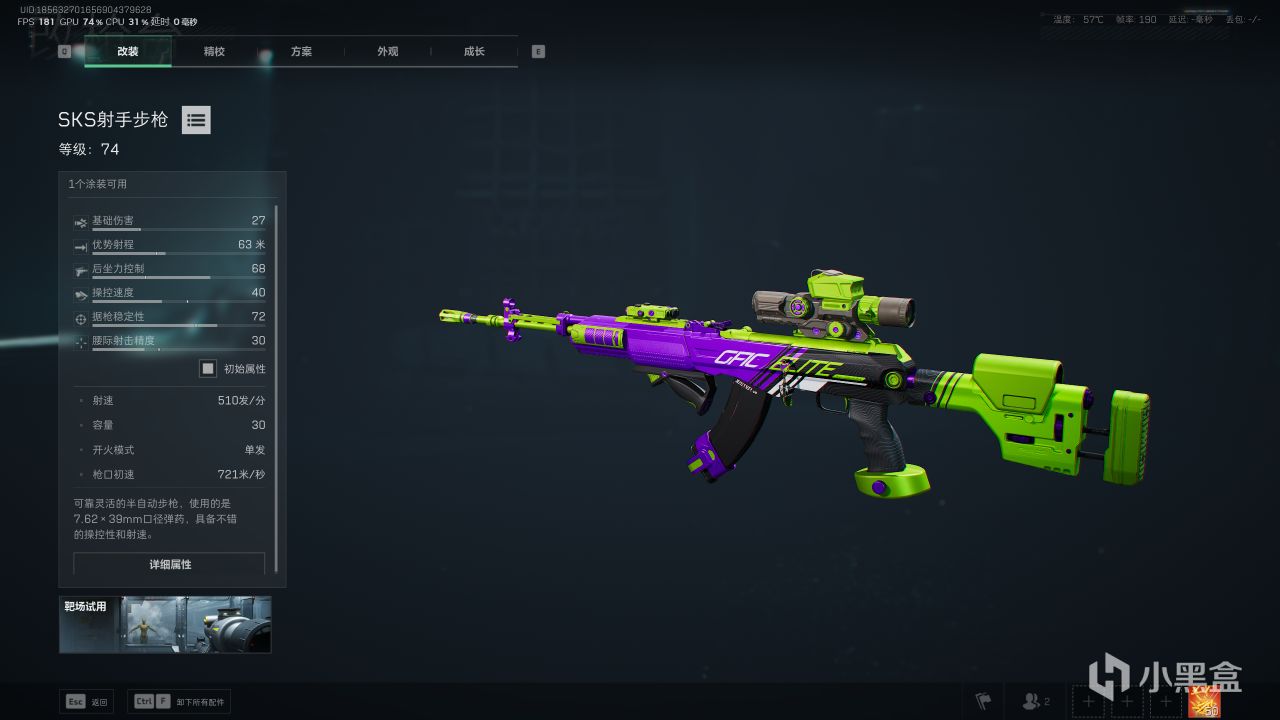 设计SKS这把武器的可爱策划我真是懆称冯了个福,一把射手步枪仅仅只有63米射程,虽然爆头可以做到2BTK,但连射时的巨大后座力恨不得把准星干天上去,射速更快的mini14都没有那么逆天的连射弹道,这把武器设计出来难道是为了让我装个二倍镜去跟191、M250这些逆天武器去打中近距离吗?这把大份武器设计出来的意义完全就是消耗你的经验卡,除了这个我完全想不出其他用途了