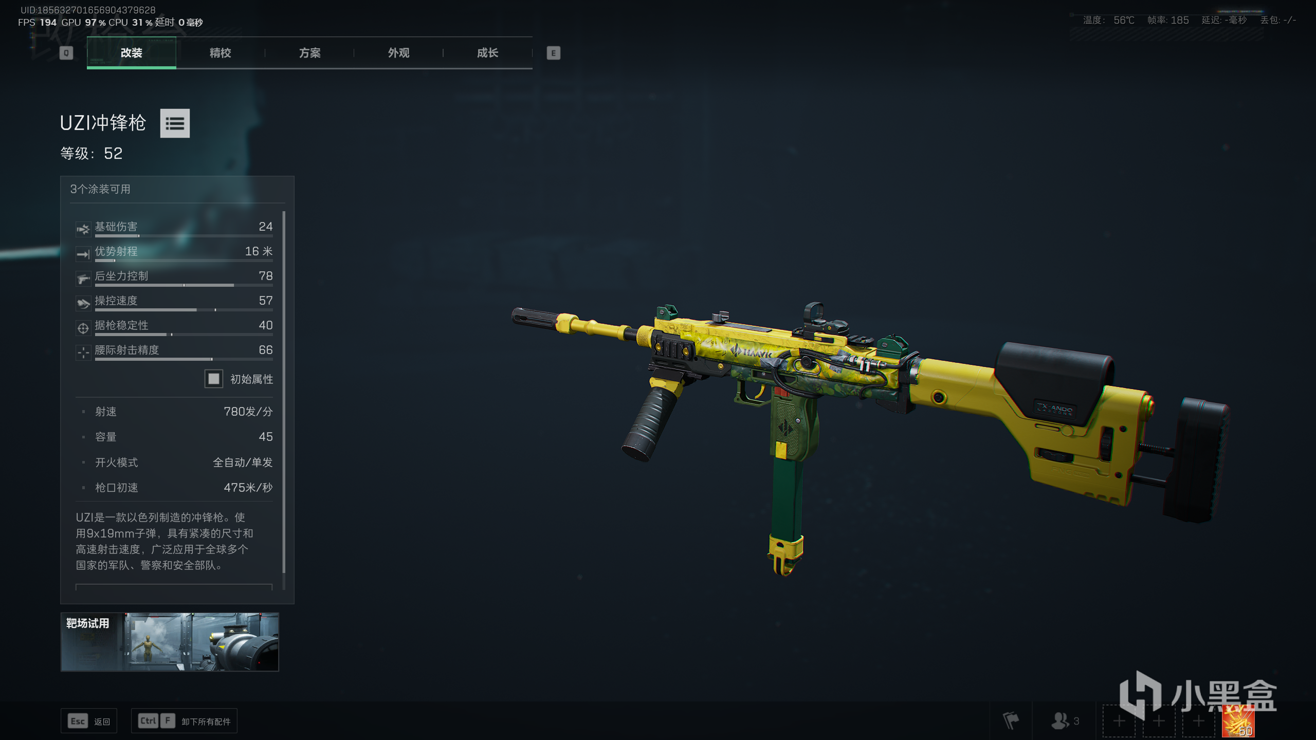 UZI的数据十分尴尬,24点伤害正好需要五枪才能击杀对手,且射程对比其他两把冲锋枪也没有任何优势,TTK更是极其平庸,同时还缺少后握配件位,唯一值得称道的地方只有弹道不错,我奶奶来了都能随便压