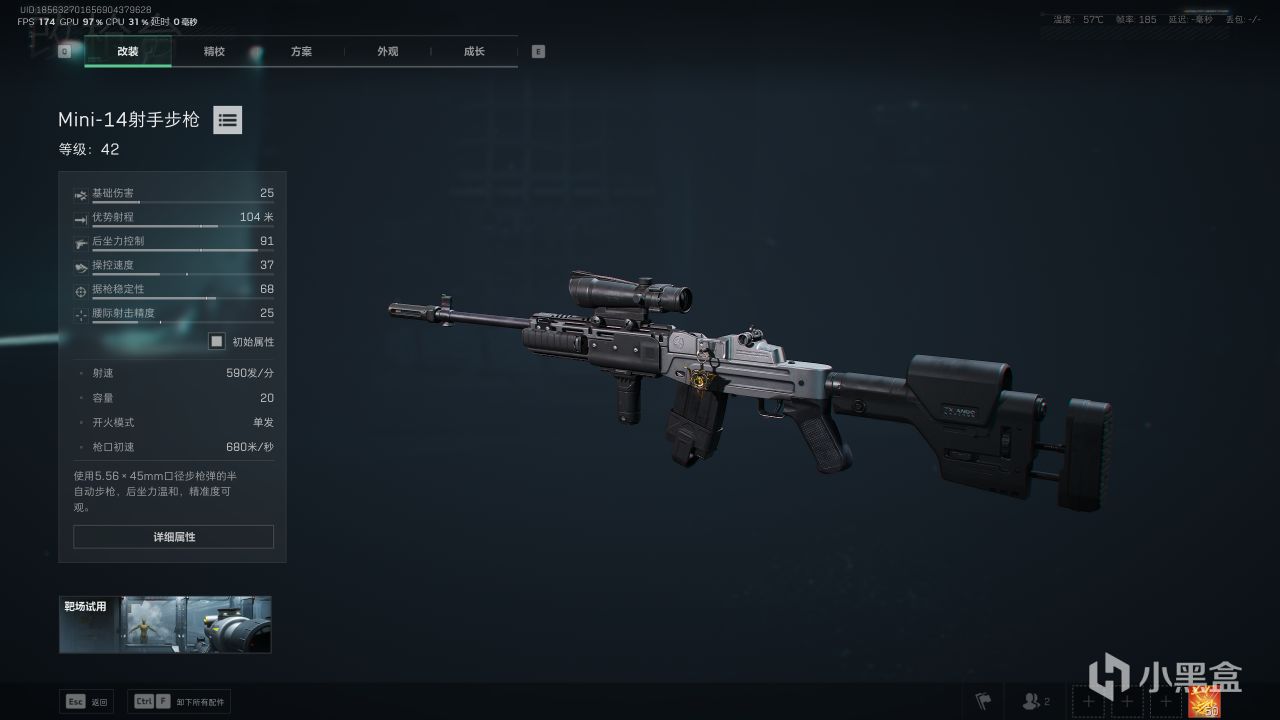 mini14就略显抽象了,虽然全身四枪死相当稳定,只是47爆头伤害无论如何都只能做到3BTK,虽然看着面板弹道不错,但扣快了只会让弹道飞起来,同时弹速过慢使它在面对远程目标时表现很差,不过不可否认,mini14的中距离爆发力比其他射手步枪赢了太多,作为一把新手武器来说表现尚可