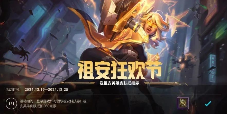 截止至12月25日(今日),召喚師登錄遊戲即可輕鬆領取祖安科技券,在商城直購部分祖安英雄皮膚時可抵扣260點券