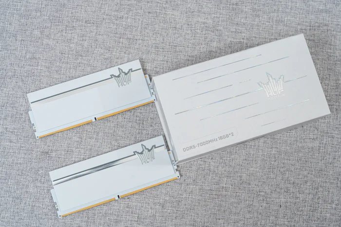 影驰的HOF PRO 灯条内存,这款DDR5 7000 具有32-42-42-112的时序,以及1.45V的电压设计,采用的海力士A-DIE颗粒