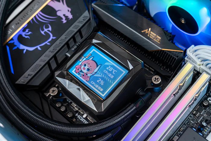 冷头造型为定制的水晶面板,下方还有星曜的logo,中间的IPS屏幕为2.4英寸 320x240分辨率,支持GIF、JPG、PNG等多种图片格式
