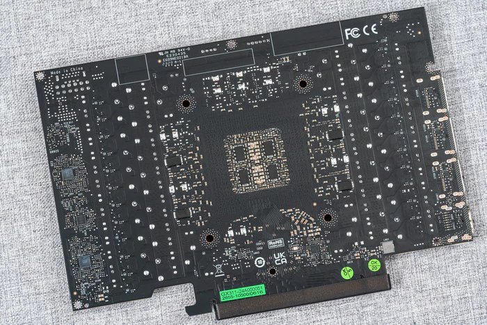 来看最后的显卡本体,采用了14层PCB,提供了优异的电气性能来搞定4070Ti SUPER,与4090相比只少了对应的4颗显存和供电规模