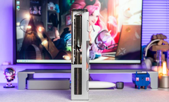 纯平面的显卡顶部,两条长方形的出风口,对于4070Ti SUPER的规模来说此等散热有点大材小用