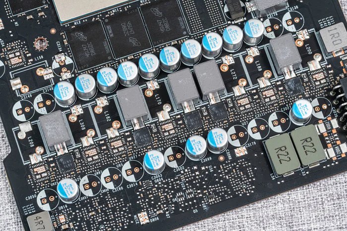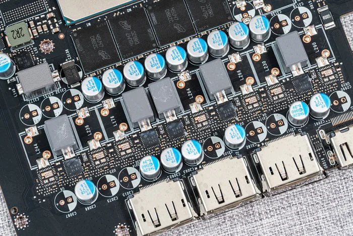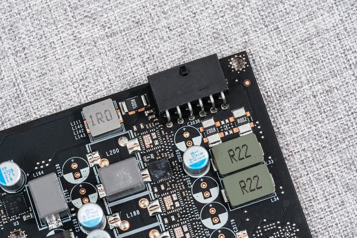 供电为10+2相规模,都采用的是AOS的55A的MOSFET "BLN3",这里挡板接口处5相核心供电