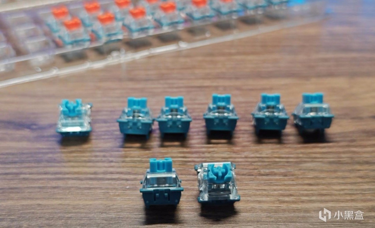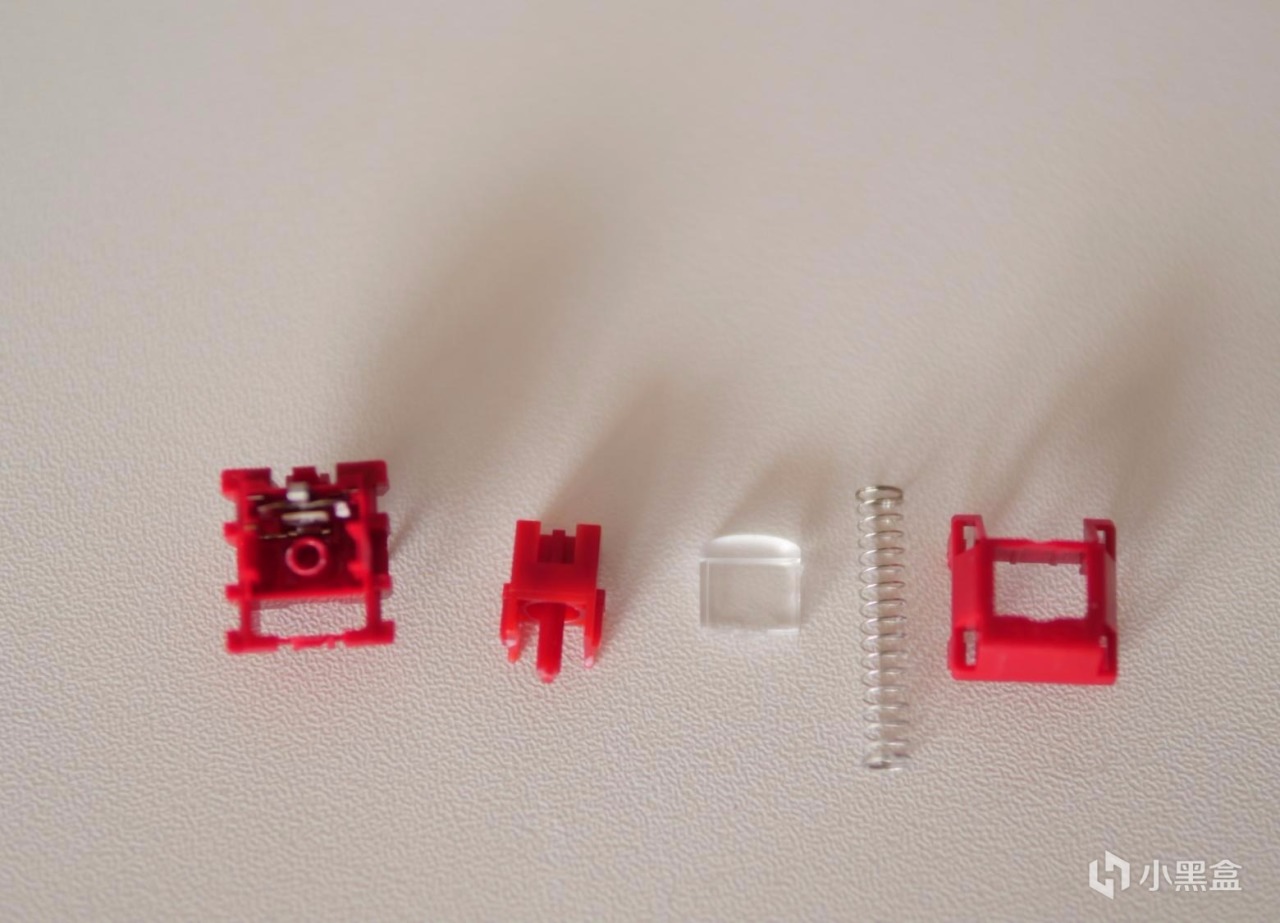 軸體是MX2A軸,我要承認它在設計上確實有特色,尤其是桶形彈簧,而且它的壽命確實一以貫之的好,它的順滑度和整體手感確實比自己的普通MX軸要好。但是和國產的這些POK軸心、POM外殼的軸體比起來,從聲音到順滑度,依然差着等級。