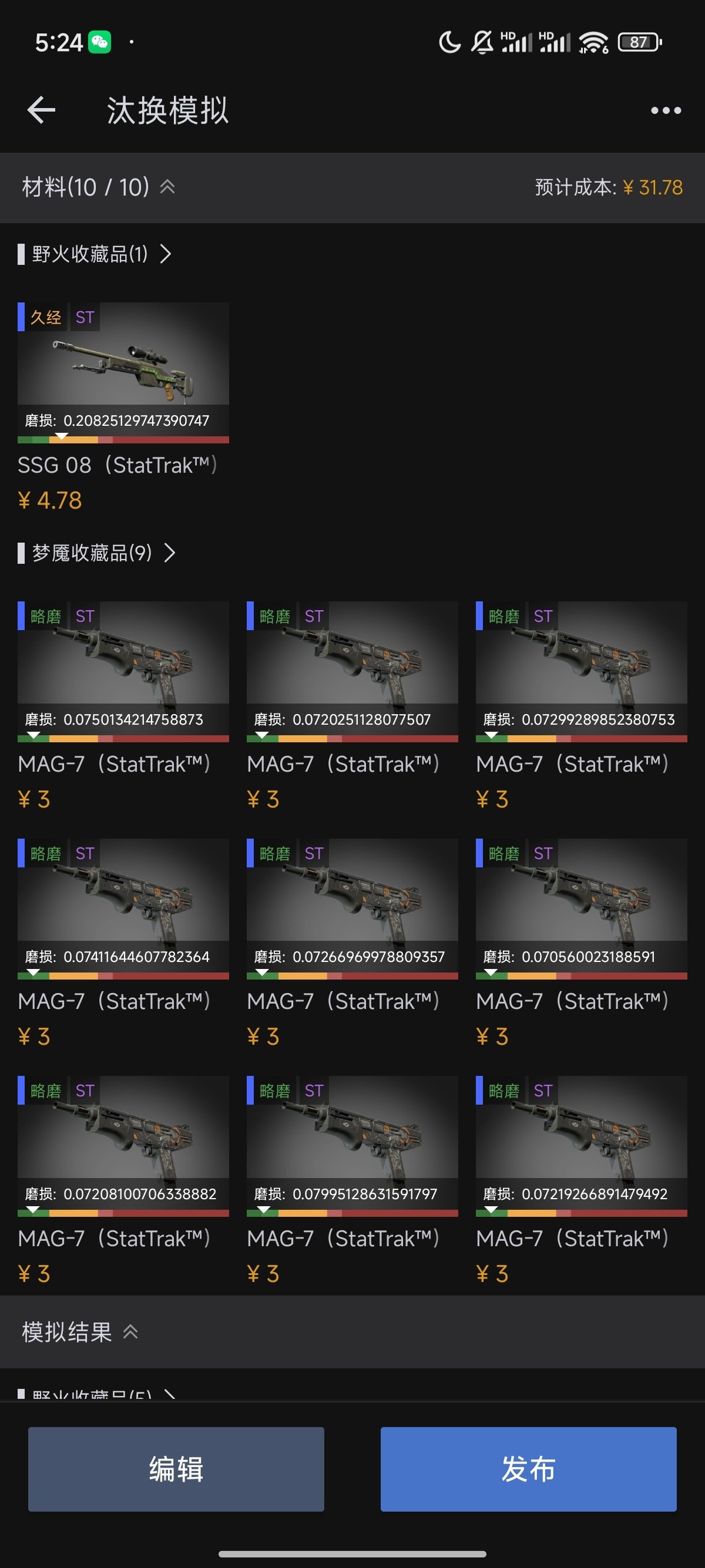 如果出千瓦的话就是两个小亏三个亏十馒头,但是这个不固定,因为要根据你的成本来算,之前我打的时候也就30馒头,出千瓦两个都不亏,如果有好磨损可能千瓦磨损更低了价格也会上去,总体来说还是比较适合新手打一下的