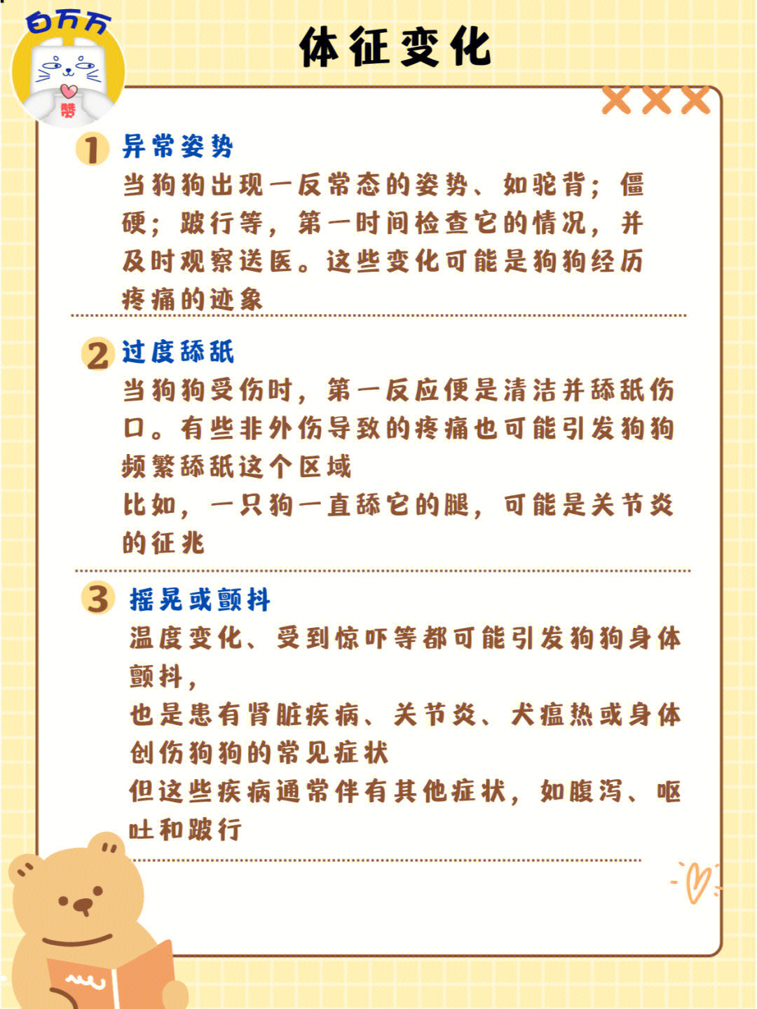 狗子突然反常?可能是在默默忍痛 2023-01-03 生活杂谈 狗狗生病忍痛时在行为、习惯改变、体征等方面均会发生一定变化,这时候主人一定要记得重视起来哦! 更多游戏资讯请关注:电玩帮游戏资讯专区 电玩帮图文攻略 www.vgover.com