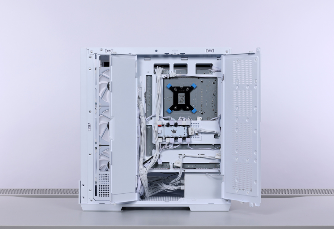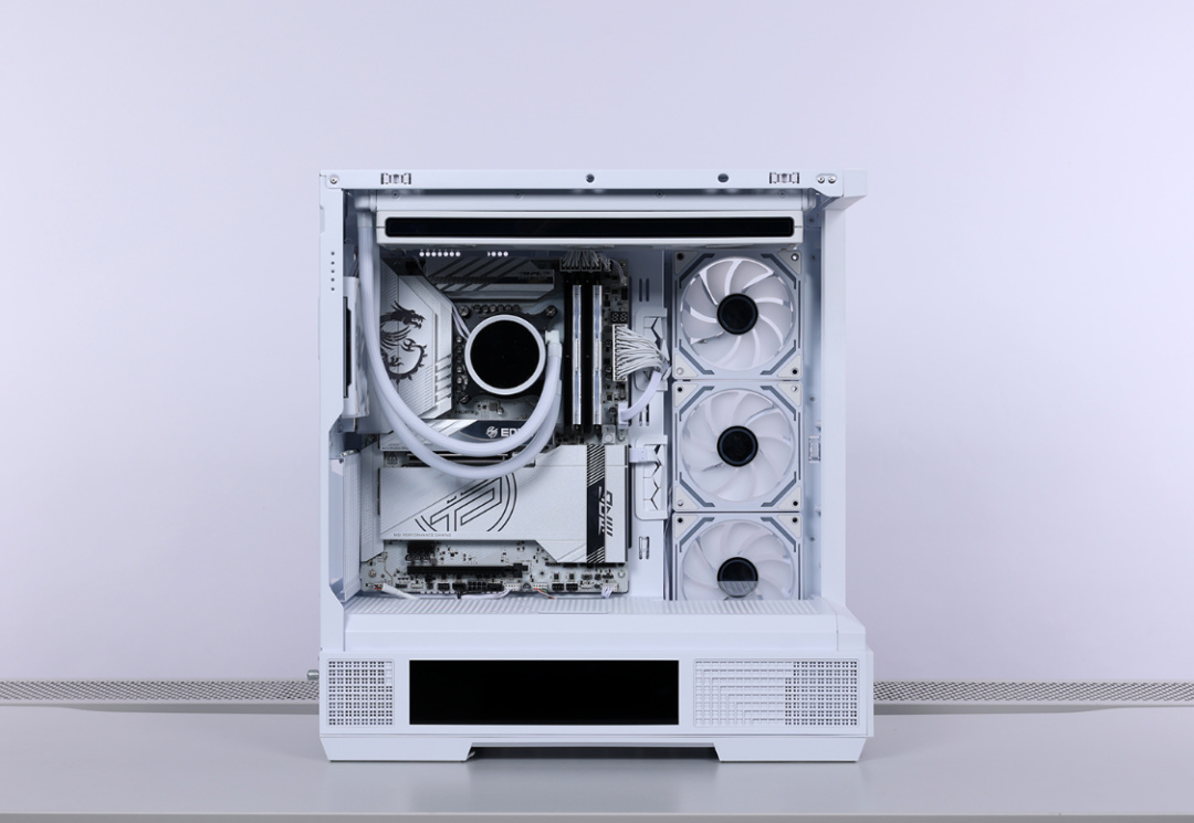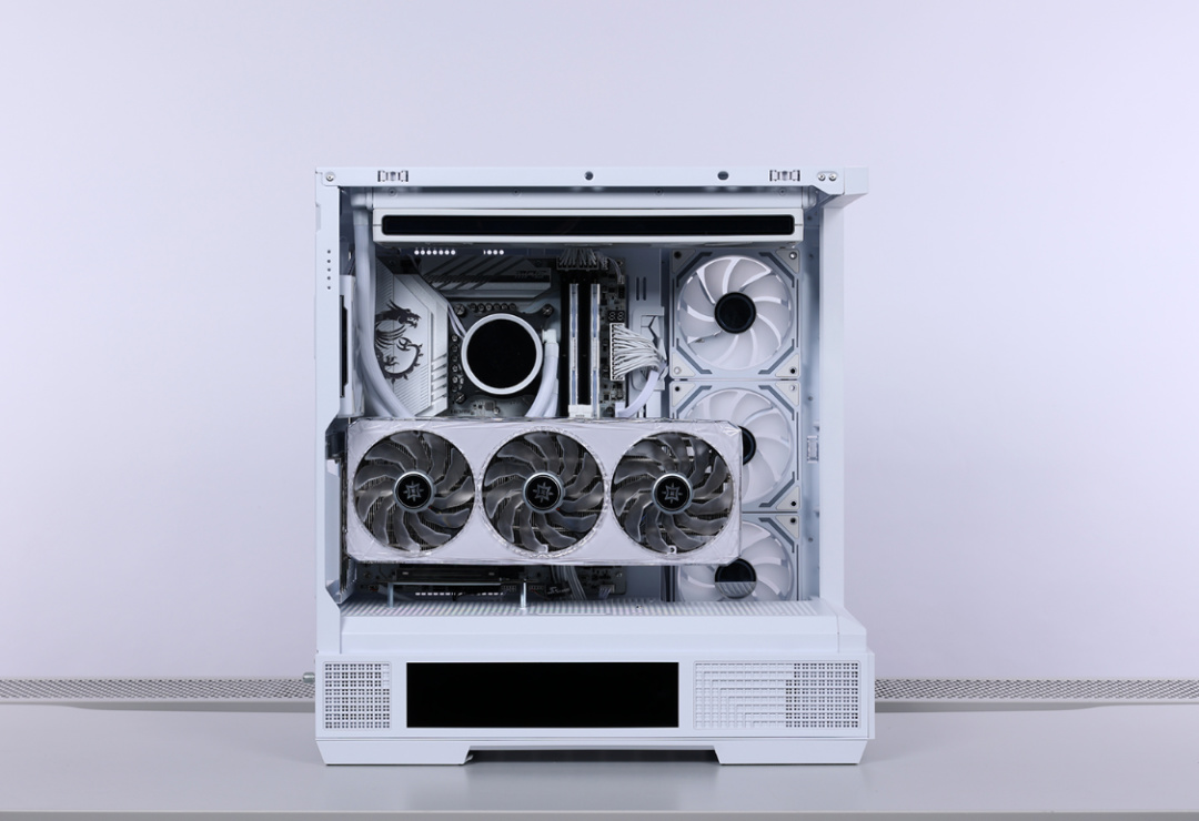 锁好散热、电源之后,风扇位也直接装满梦境Pro 白色ARGB风扇。