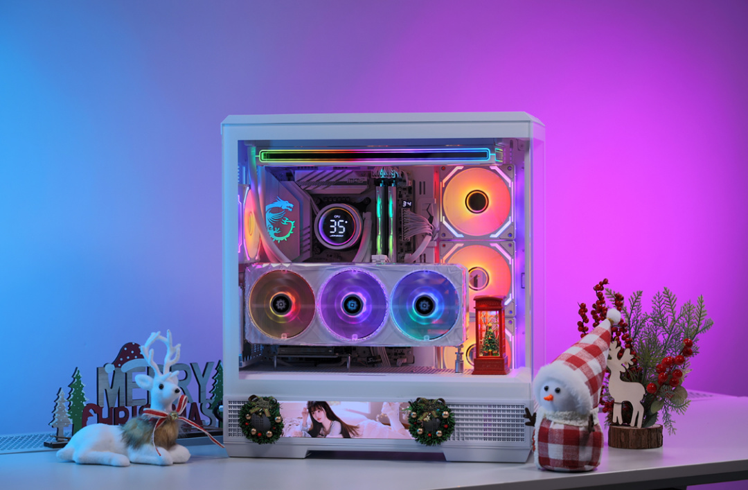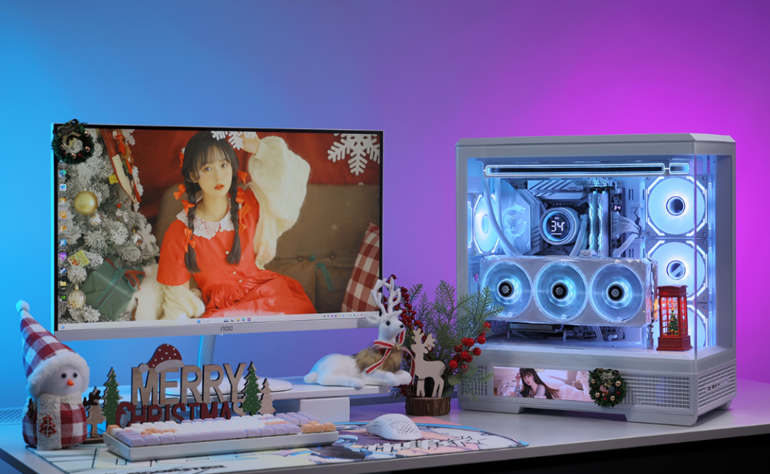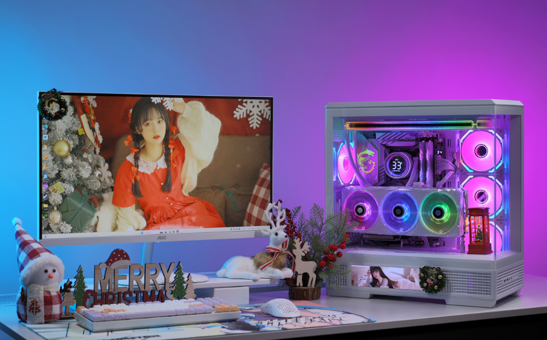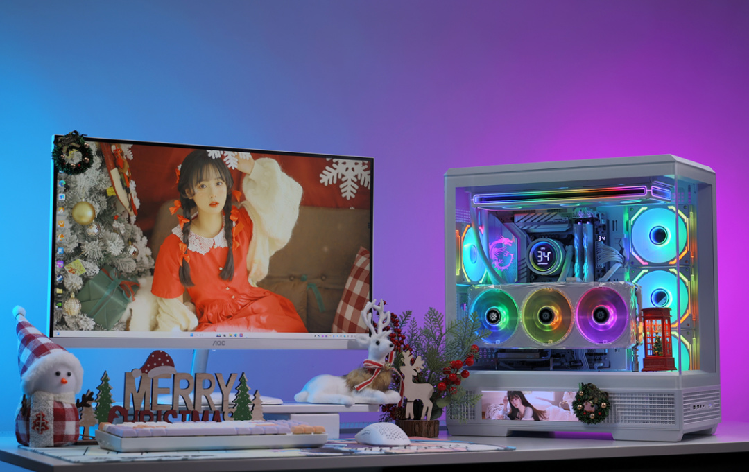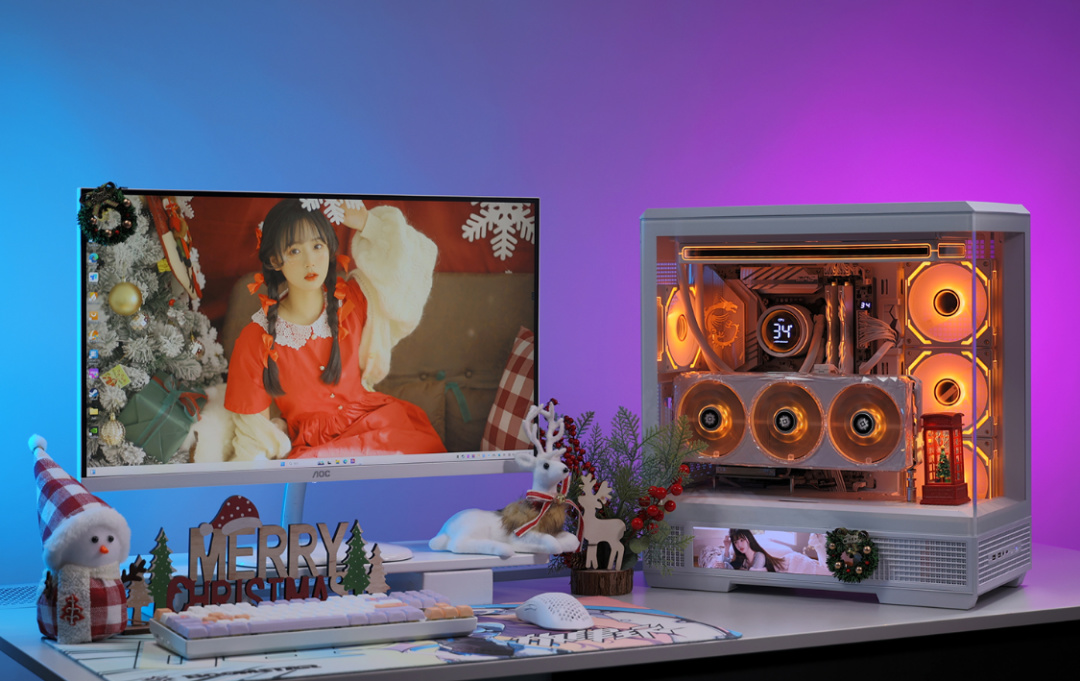 全白主题,Ultra7+4070TiS+48GD5的配置,还有星璨大岚的高清大屏,不论颜值还是性能都拿得出手。圣诞礼物可以是噱头,但是给自己的高配游戏主机,那可以是实打实的快乐。当然,为颜值买单,那也是你情我愿的事,最终选择权都在你自己手上,上文内容仅供参考,不喜勿喷,感激不尽。