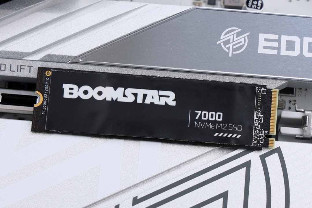 主板近CPU侧的的硬盘位最高支持PCIe 5.0 x4,但是时下PCIe 4.0才是主流。所以,咱们选择的是一颗满血的星曜7000 Plus 1T 固态硬盘。用上主板自带的散热马甲,固态本身是黑或白就没有那么重要了。