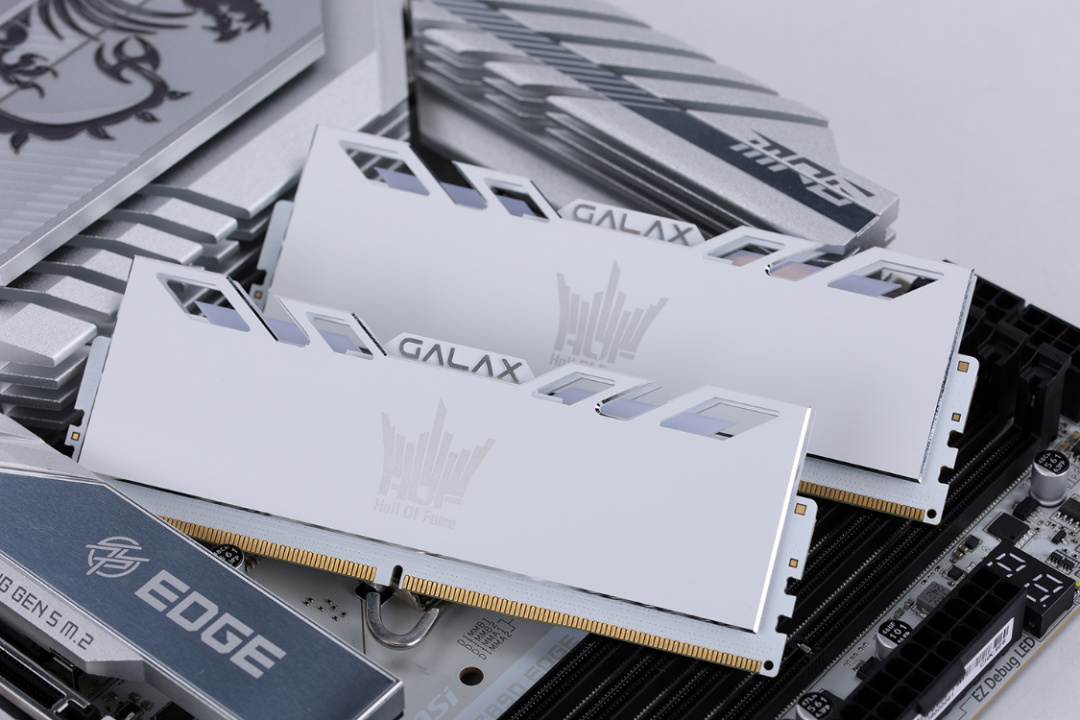 内存方面,今儿选择的是并不那么主流,但是更好地兼顾了生产力的HOF Extreme D5-7200MHz 24G*2 内存。全白金属散热马甲加持下,跟全白整机主题也可以更好地契合。