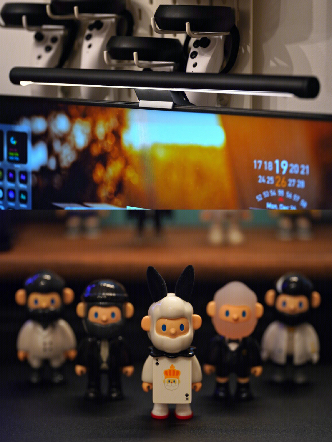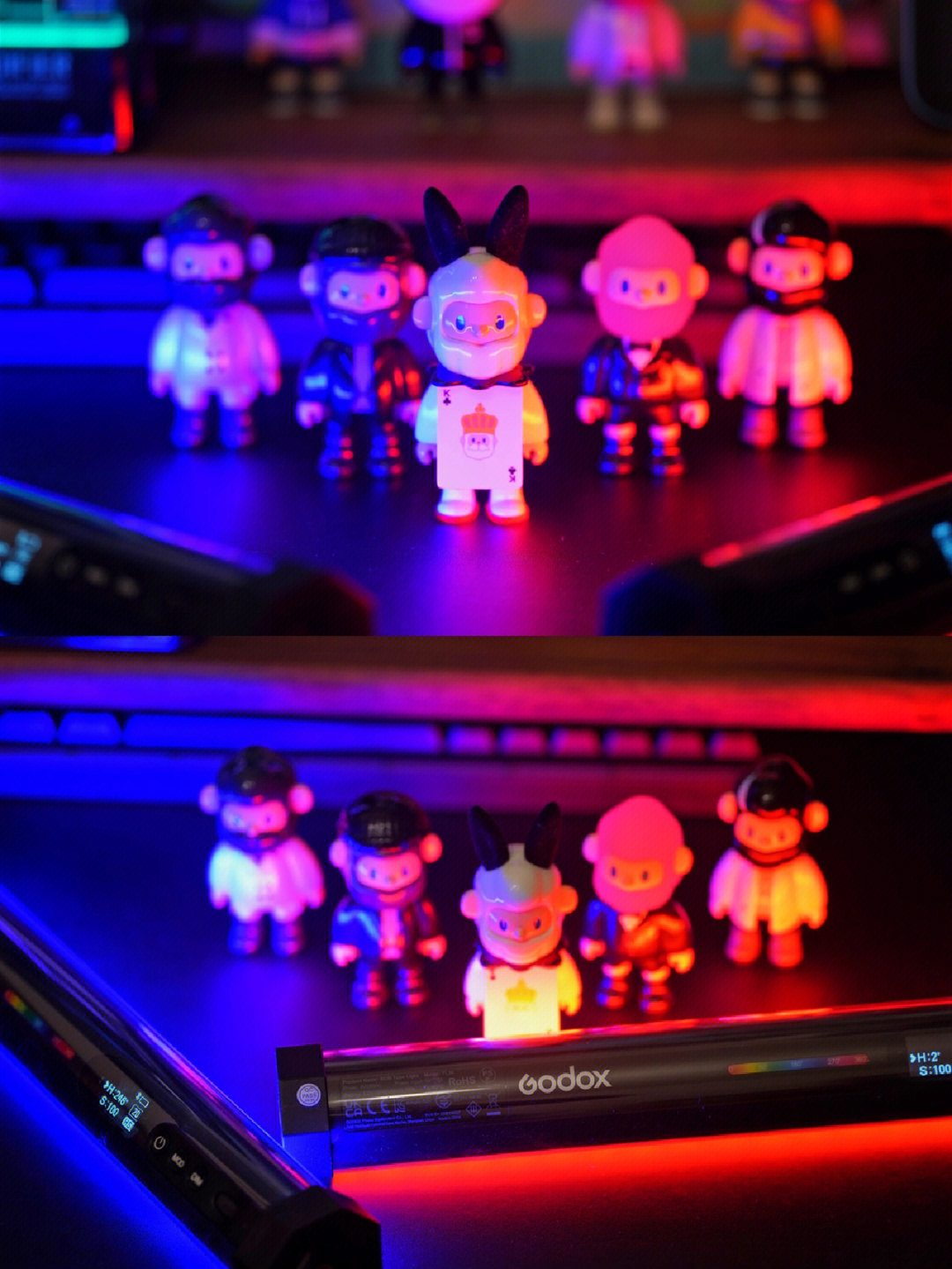 圖6-圖7,使用的是米家的屏幕掛燈,模仿舞臺燈光效果,有種射燈的感覺,拍攝盲盒非常不錯。