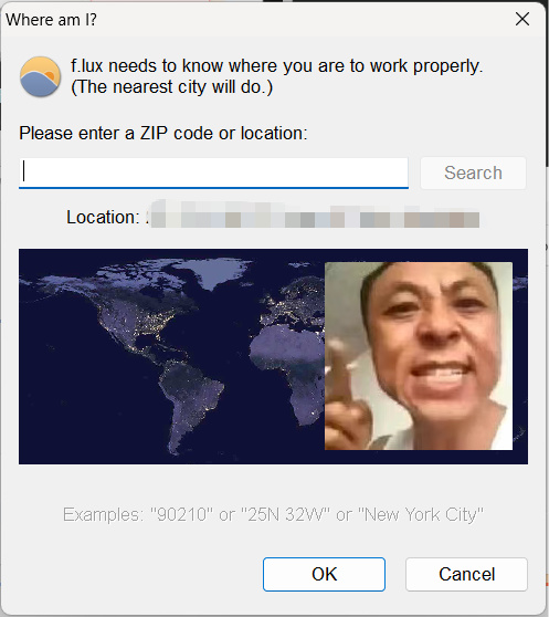 打開軟件,首次開啓會彈出Where am I?窗口,輸入你所在城市名稱或座標,該軟件就會家訪真實你(just kidding),該軟件會根據當地時間來管理你的系統顯示效果