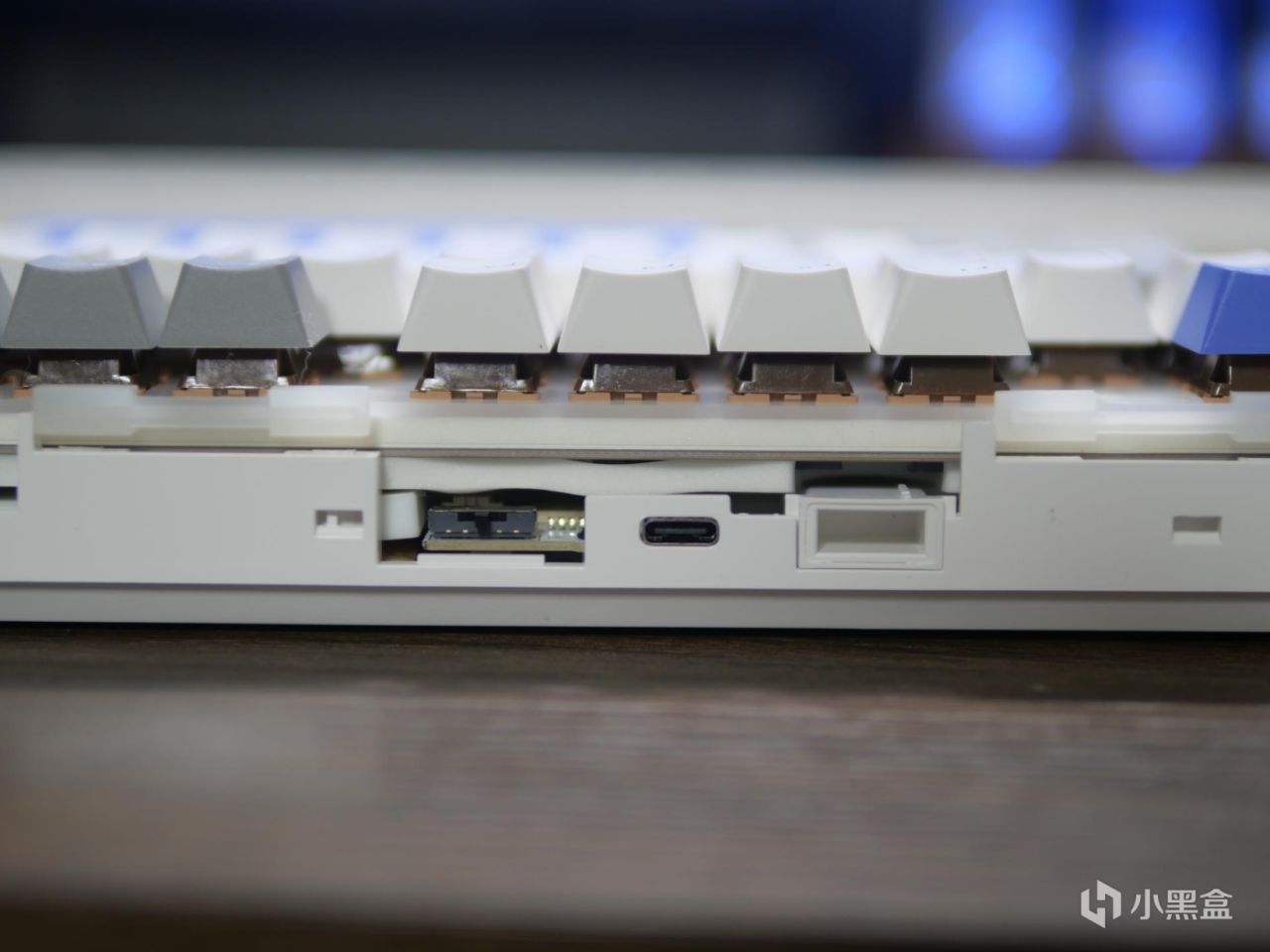 连接模式切换、C口、接收器收纳槽均在左前侧,不过并没有给到实体的win/mac切换拨块,如果需要调整的话需要通过Fn组合键来实现。