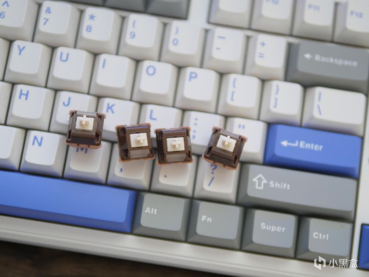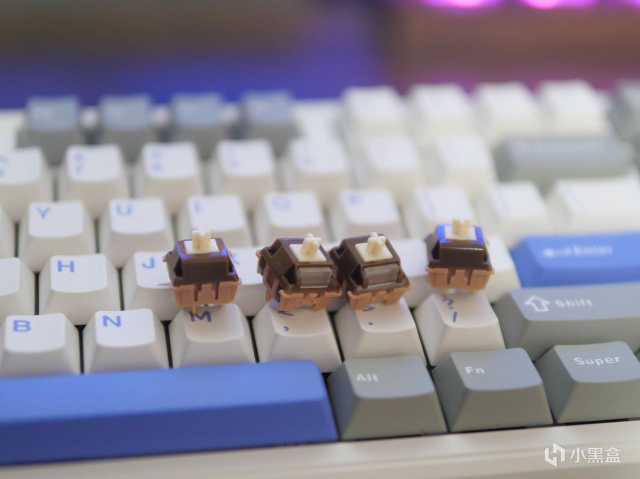 轴体方面无脑选焦糖拿铁轴,这款轴几乎是环诺出品目前市场上综合口碑最好的一款轴体了,之前搭载这款轴体的键盘普遍在229、259的价格,而且还都是75%或者87配列,而这次F108算上包装里送的4颗替换轴,总共112颗焦糖拿铁,只卖199元,性价比还是非常到位的。