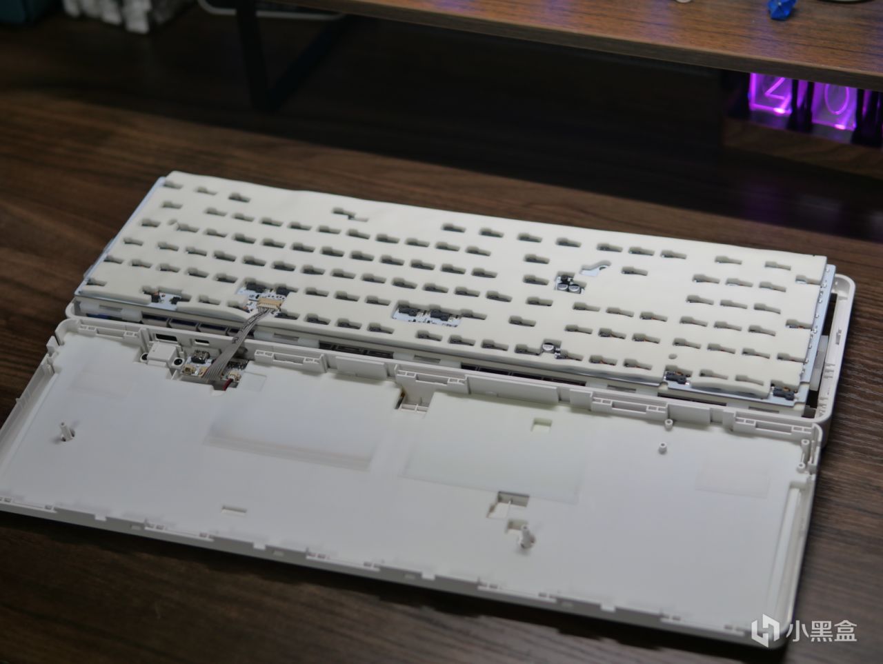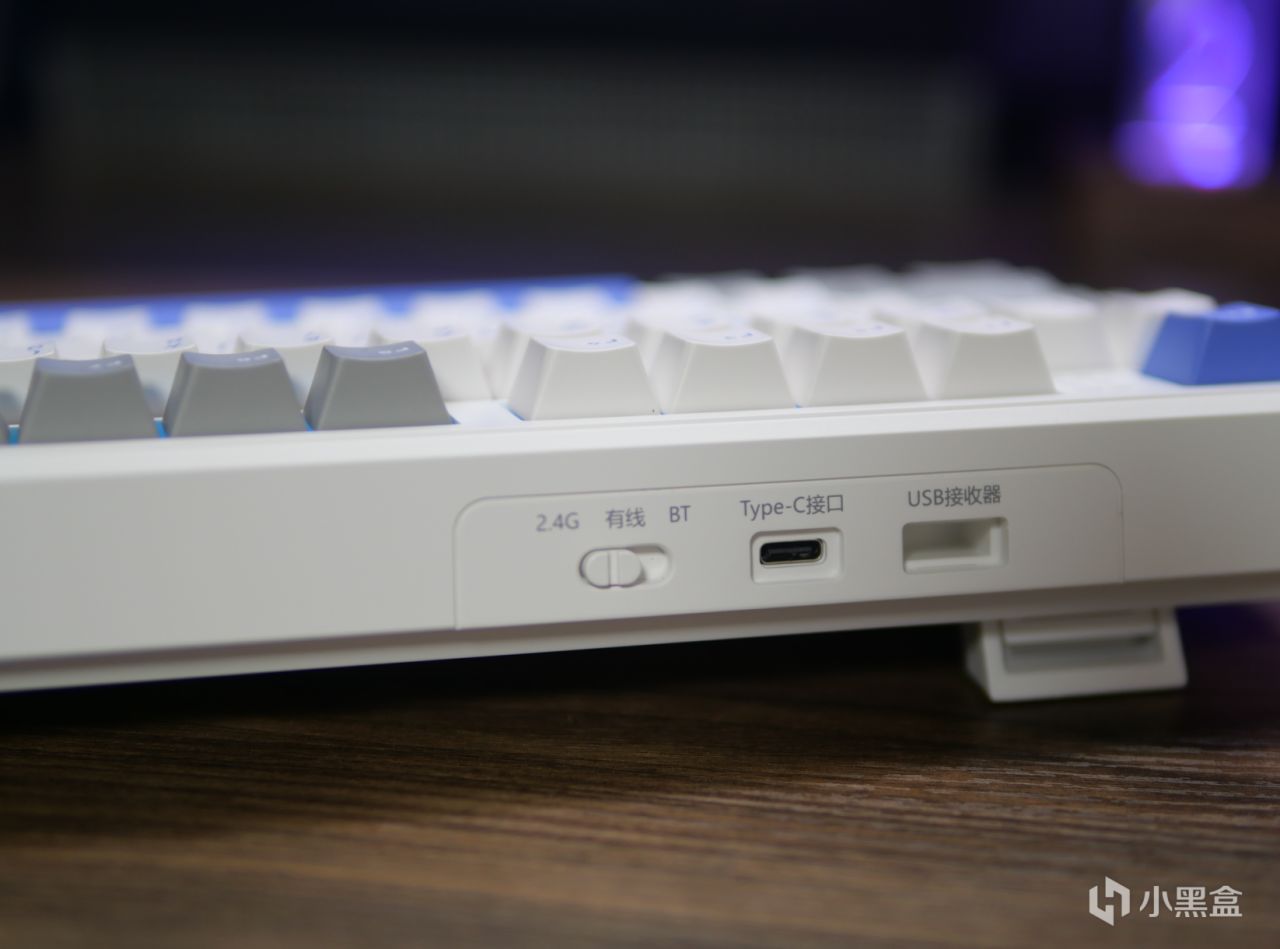 而这种104/108的满配列键盘,更多的还是应用于办公场所,反正我日常放在办公室的键盘即使是三模,但也是一直插电使用的。电池大小真的是没那么重要,与其增大电池,不如把模式切换设计在正面,让平时切设备更方便来得实在。