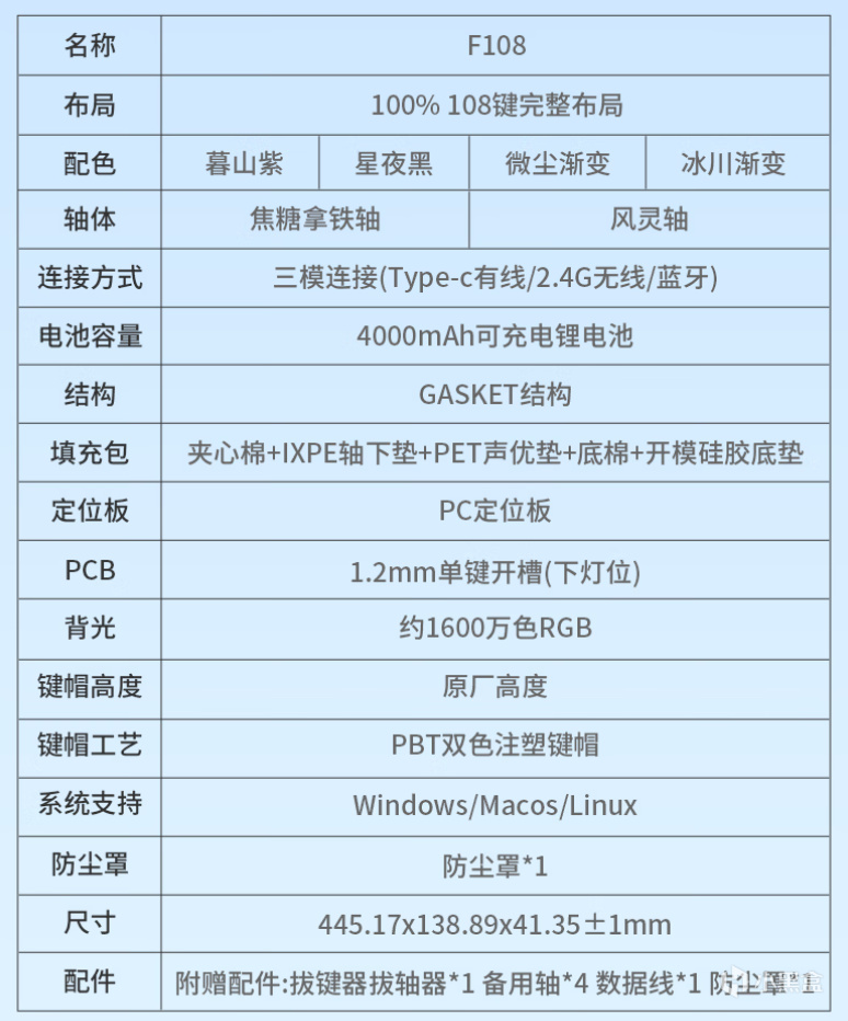 一直有网友提说这把键盘4000mAh的电池实在太小了。建议后续买F108Pro版本,因为8000mAh电池。