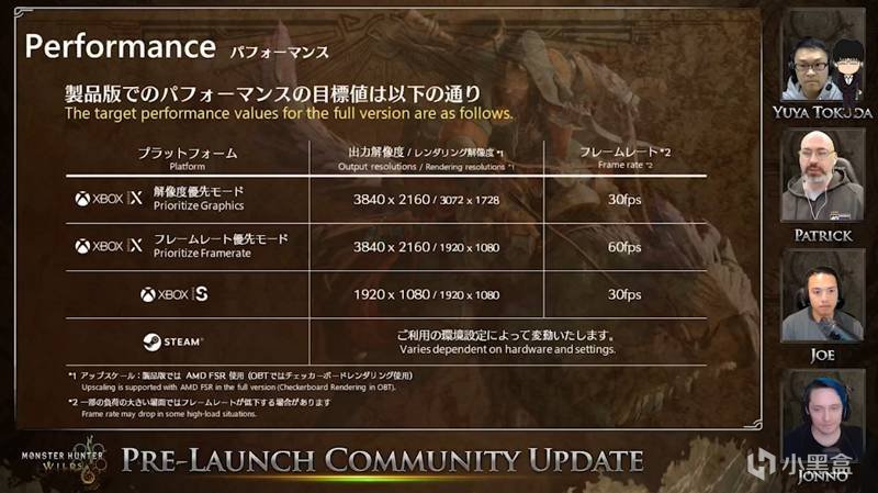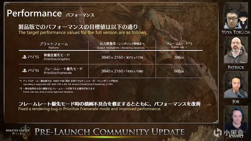 整個流程長達1個多小時,德田優也綜合性的展示了目前最新調整過後各平臺的性能優化,還有絕大多數玩家所關注的武器調整。首先是4K分辨率下,官方展示了PS5、PS5 Pro、XSX丨S和PC方面的情況