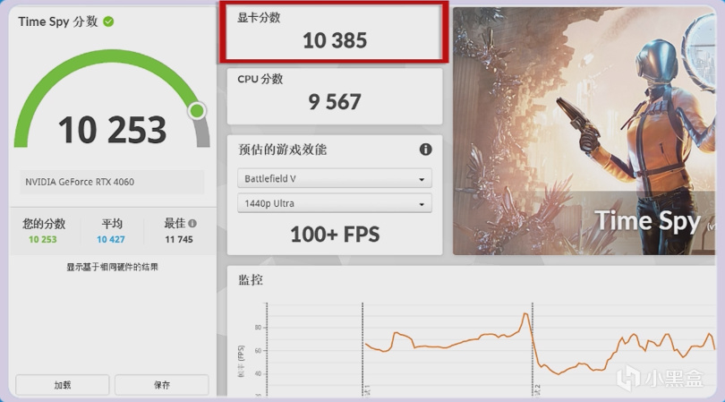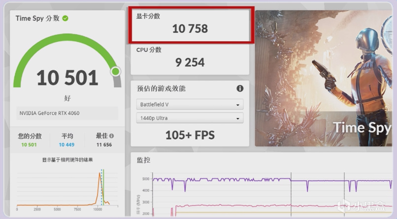 微星的4060 Gaming X魔龍在3D MARK TIME SPY 得分10758分,