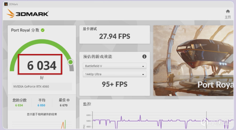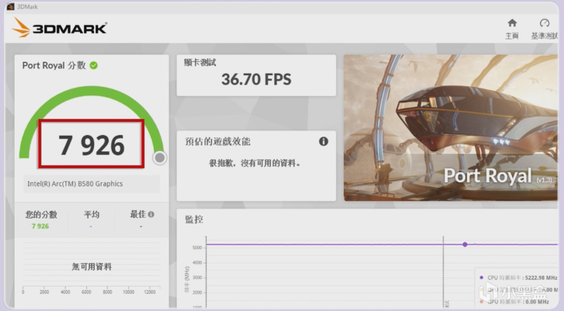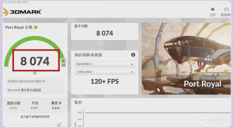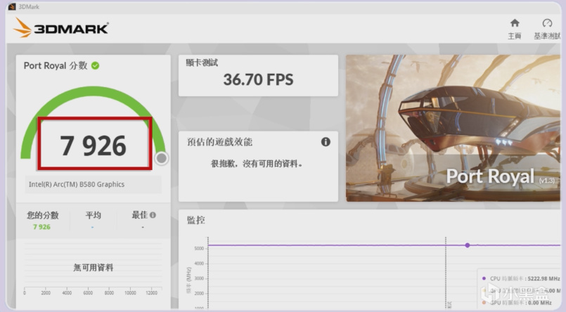 Port Royal得分7926分,跑分甚至持平4060Ti,