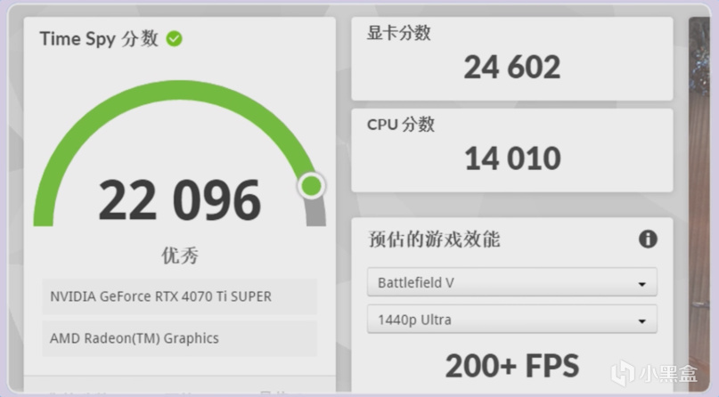 映衆的4070TISUPER 曜夜ULTRA在3D MARK TIME SPY 得分24602分,