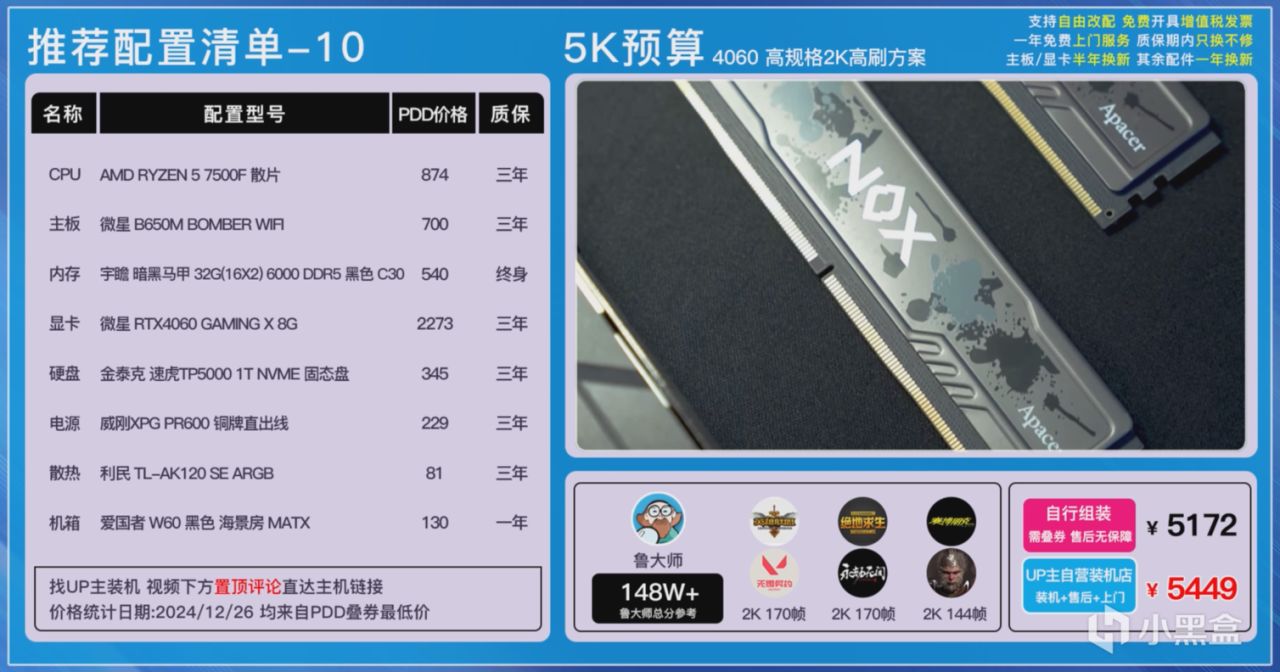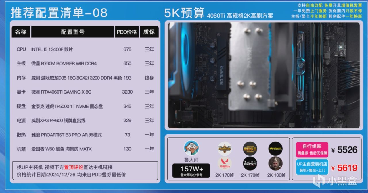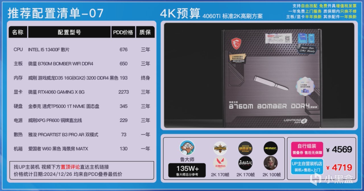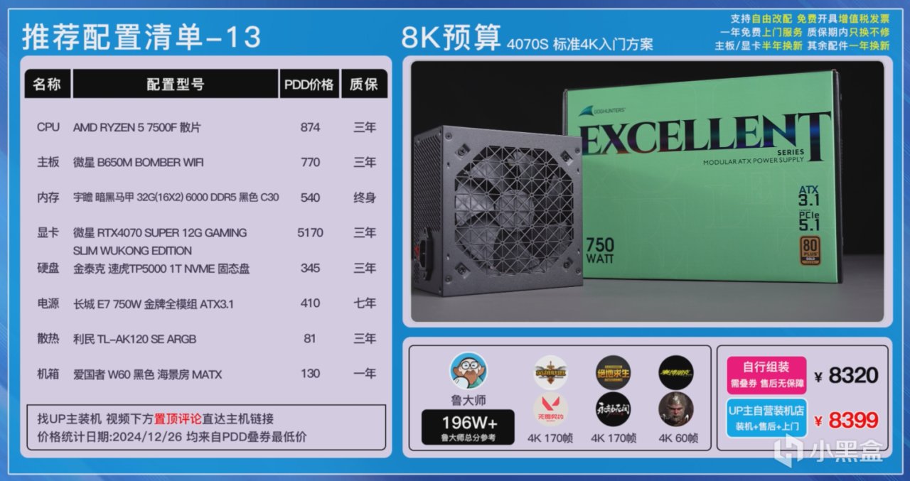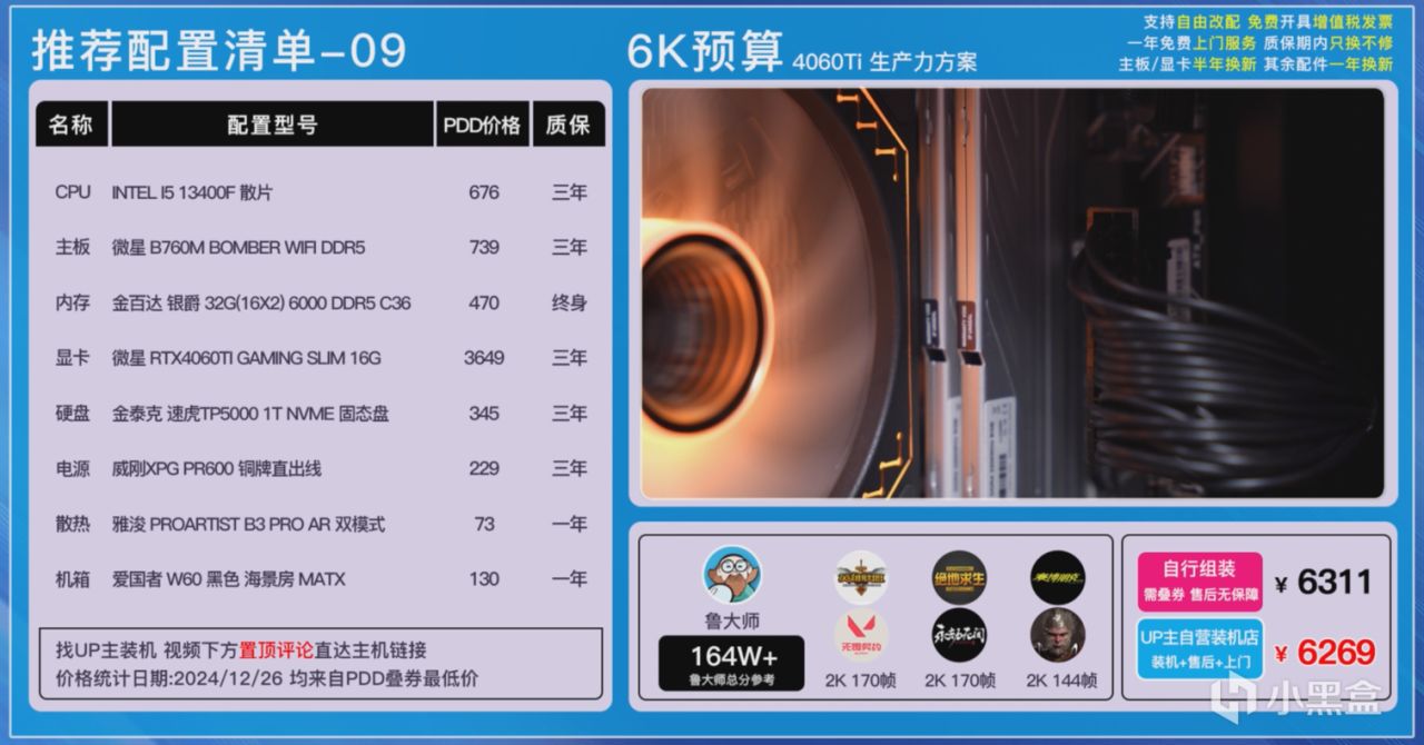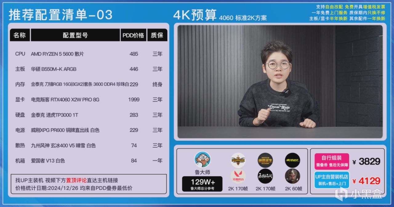 大家可以在各個平臺自行搜索一下價格,也可以在UP主自營店鋪《和微論件DIY電腦》一鍵裝機畢業,每一套主機都我們進行了裝機實測,確保穩定性和兼容性不會有任何的問題,而且我們還有400多G的實測數據,這可不是雲推薦哦!