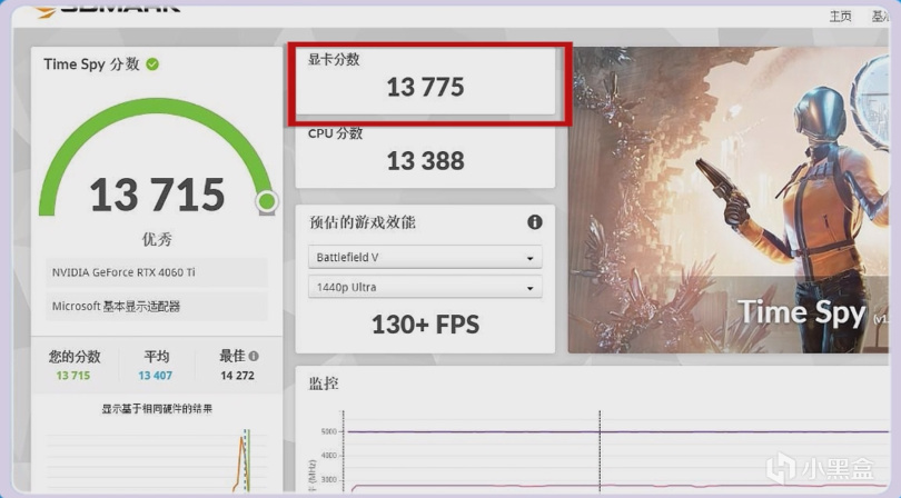 微星4060Ti魔龍在3D MARK TIME SPY中得分13775分,