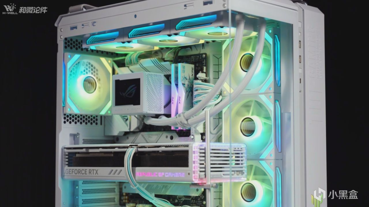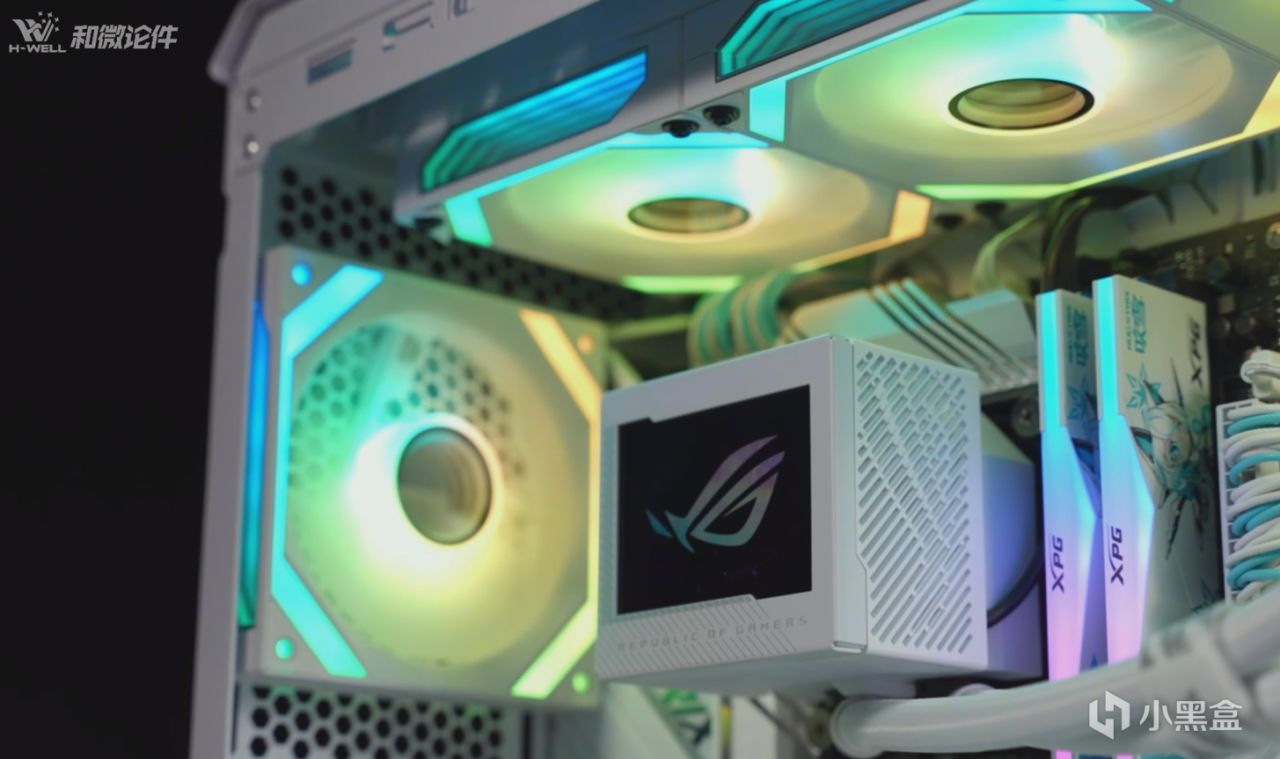 4080SUPER的方案,因爲顯卡是白色,我們當然也是將每個硬件都更換成了白色,主板選擇ROG B650-A大吹雪,內存搭配了D300G 6000 C28 32G雙通道的燈條,進一步提升整機的顏值,還有愛國者的星璨嵐PRO三面玻璃的海景房機箱,整機搭配出來的效果還是非常震撼的。