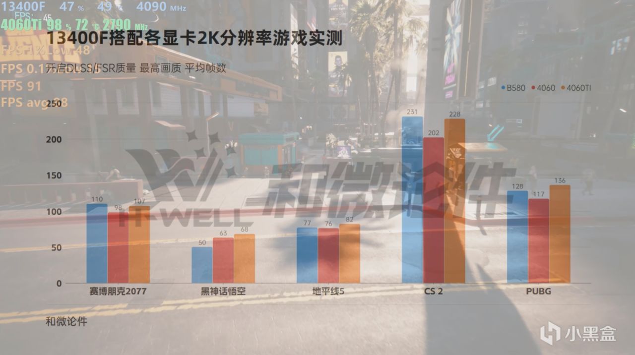 測試環境依舊選擇的是2K分辨率的最高畫質,好在在英偉達的DLSS加持下,在大多數3A中4060都是可以保證流暢運行的,顯卡升級到4060Ti則是可以接近百幀暢玩,B580對於個別3A的優化還是稍差一些,但是來到CS2和PUBG這類的網遊,幀數可以與4060Ti扳扳手腕,對於絕對多數人來說,遊戲性能肯定是完全夠了的,而且這還不是B580的全部性能哦,相信intel後續優化後,這張顯卡還能帶給我們不少的驚喜。