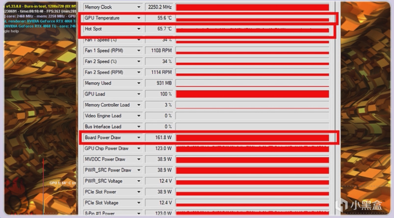 經過甜甜圈10分鐘的滿載壓力測試,最終功耗是來到了161.8W,此時GPU的溫度爲55.6度,熱點溫度最終爲65.7度,看來微星對於散熱這方面的確是有一套的,2張魔龍的溫度控制是非常到位了。