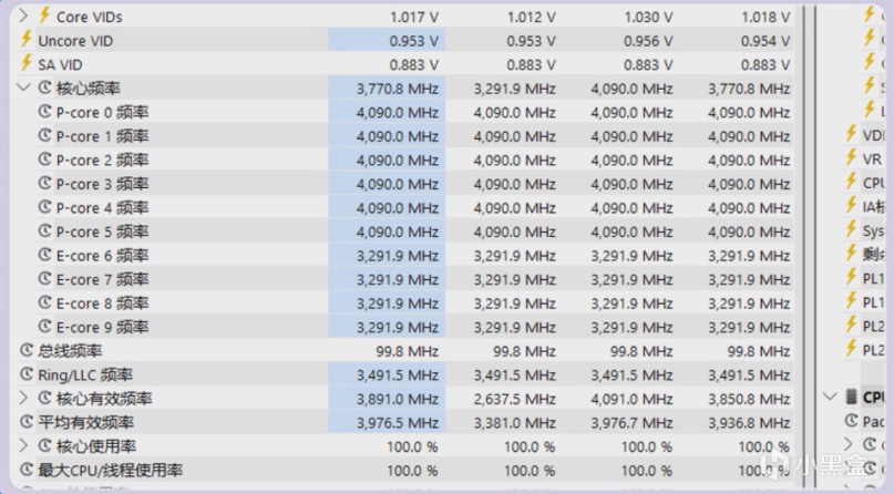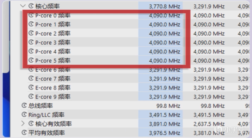 搭配微星的Z790 GAMING PLUS主板,則是可以將14600KF P核跑滿到5.3Ghz,E核跑至4Ghz,