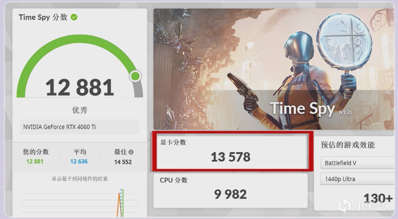 盈通4060Ti大地之神在3D MARK TIME SPY 得分13578分,