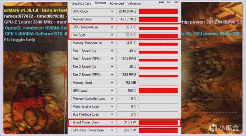 滿載狀態下它的功耗是來到了317W,此時GPU核心溫度只有66.3度,熱點溫度也僅有78.3度。