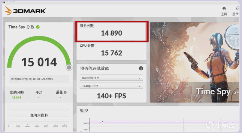 顯卡這裏,銘瑄的B580里程碑在3DMARK TIME SPY 得分14890分,