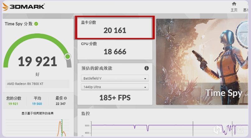 盈通7800XT花嫁在3D MARK TIME SPY 得分20161分,