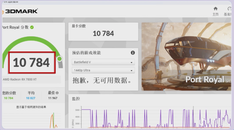 PortRoyal光追得分10784分。