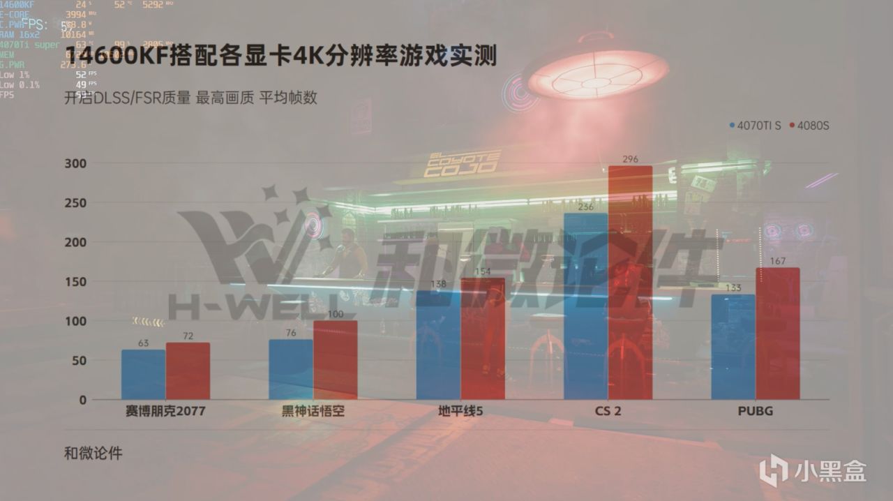 4070TI SUPER以及4080SUPER我們就直接把分辨率提到了4K,用它們來玩2K着實是有點大材小用了。