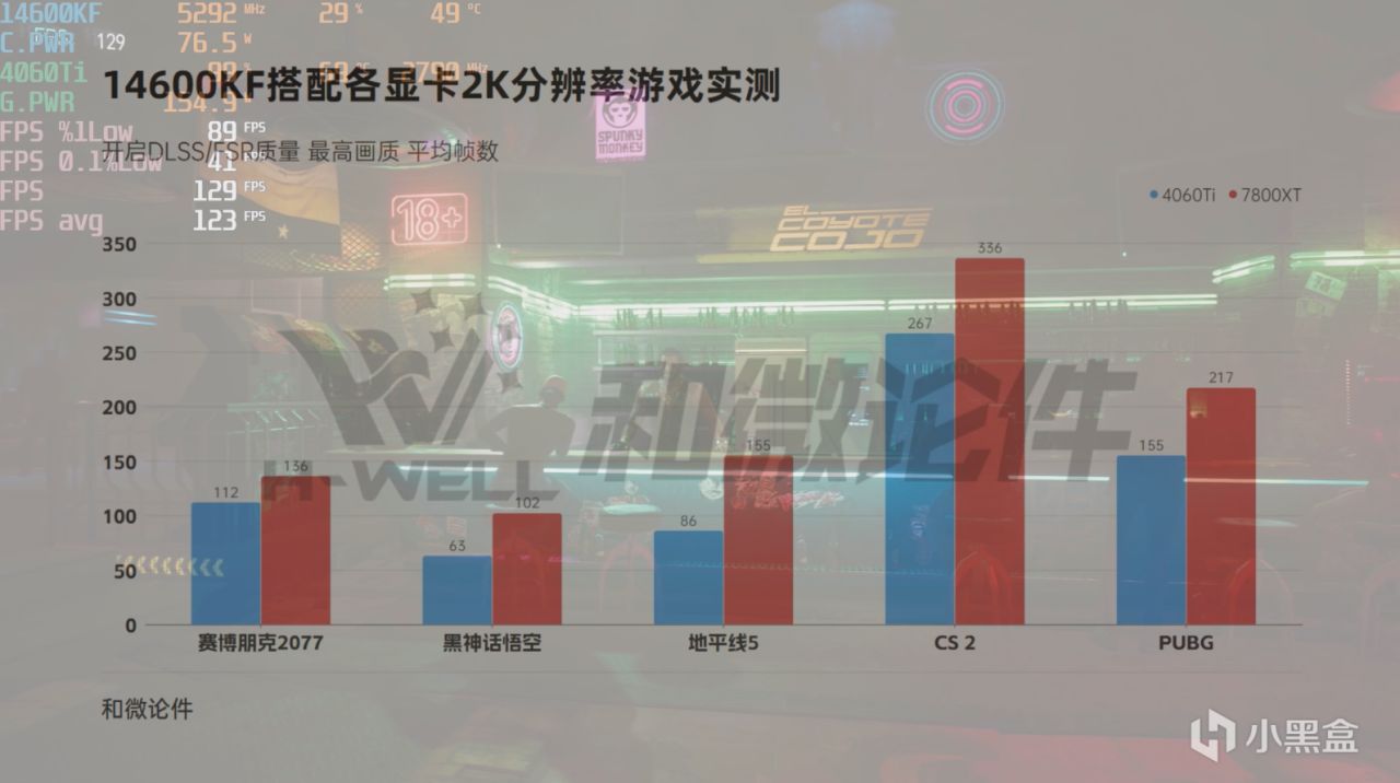 遊戲的測試方面,因爲4060Ti 16G與8G版本僅在顯存大小有差距,對於遊戲性能上的影響幾乎沒有,所以我們4060Ti 只測試了8G配置的遊戲幀數。
