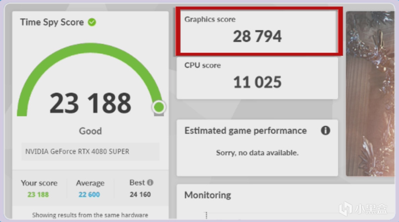 電競叛客4080SUPER X3W MAX顯卡在3D MARK TIME SPY 得分28794分,