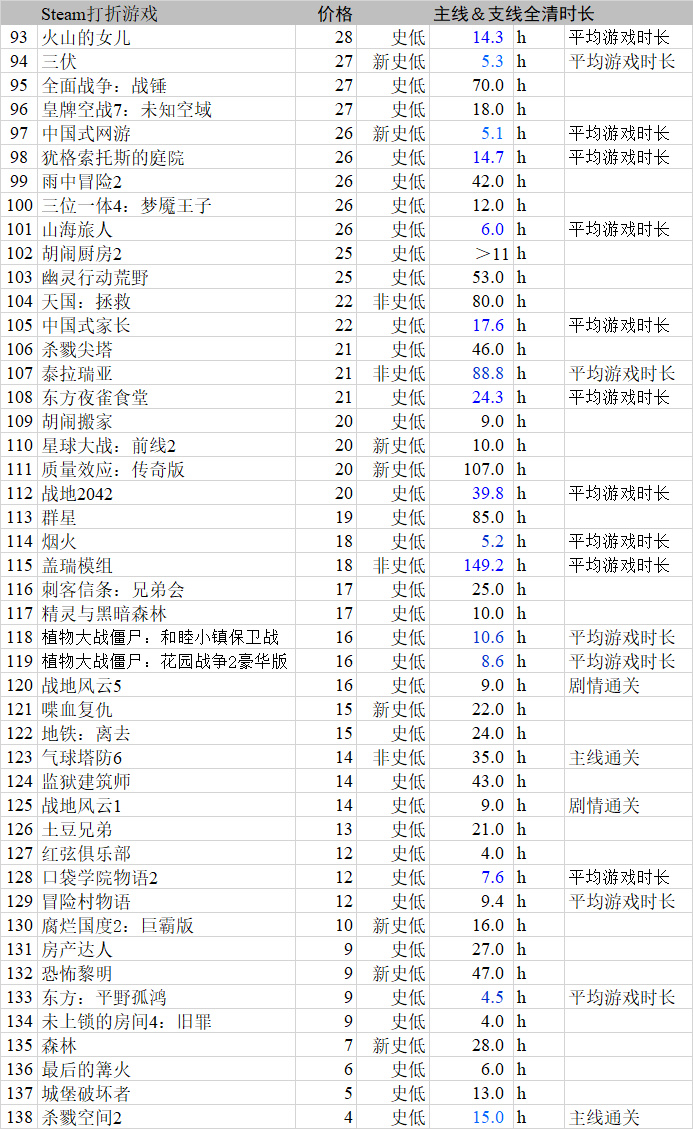 Steam冬促大表格骨折新史低等超全高质量游戏推荐(含主支线时长)