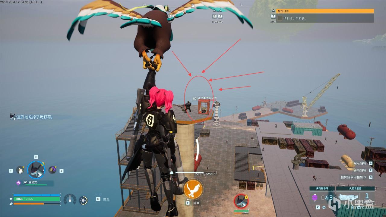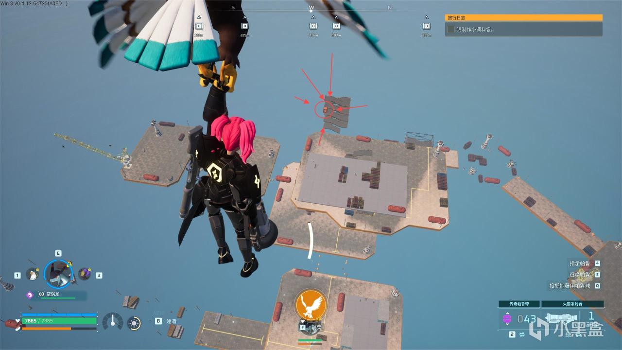 🌹第二步:我们通过空涡龙飞足够高,然后到油田上面结束骑乘F,自由落体的过程中可以通过天擒鸟来降低速度。(最关键是我们眼睛放亮一点点,快速对五个位置进行扫描,举个例子可以看到图中很小的红色笼子)