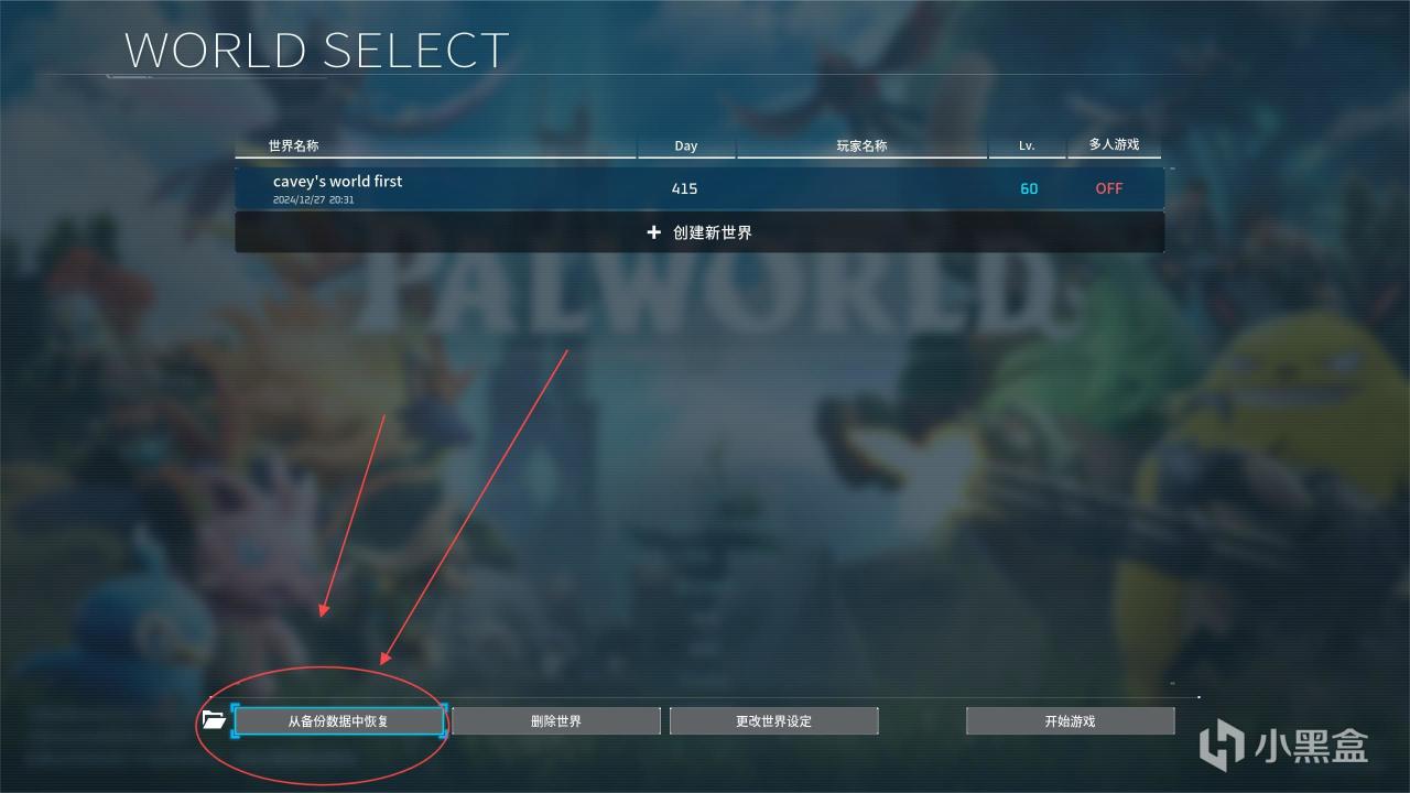 🌹第二步:开宝箱之前返回标题界面->点开开始游戏->选择世界->左下角的从备份中读取游戏->记住你当前的时间存档!