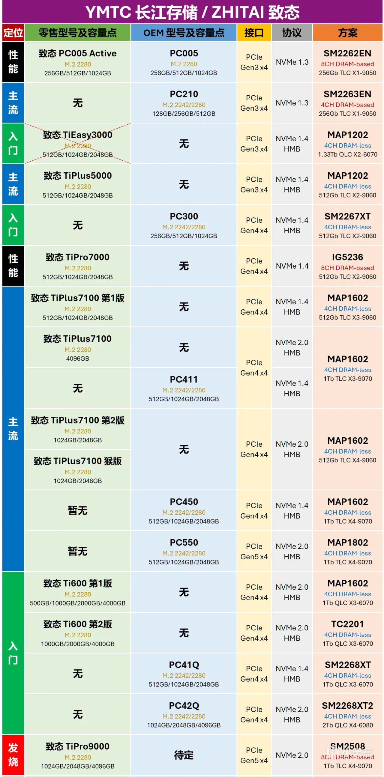 作为国产之光,YMTC的表格也很值得一看,这里同样有几个需要注意的地方。