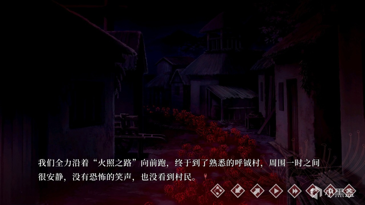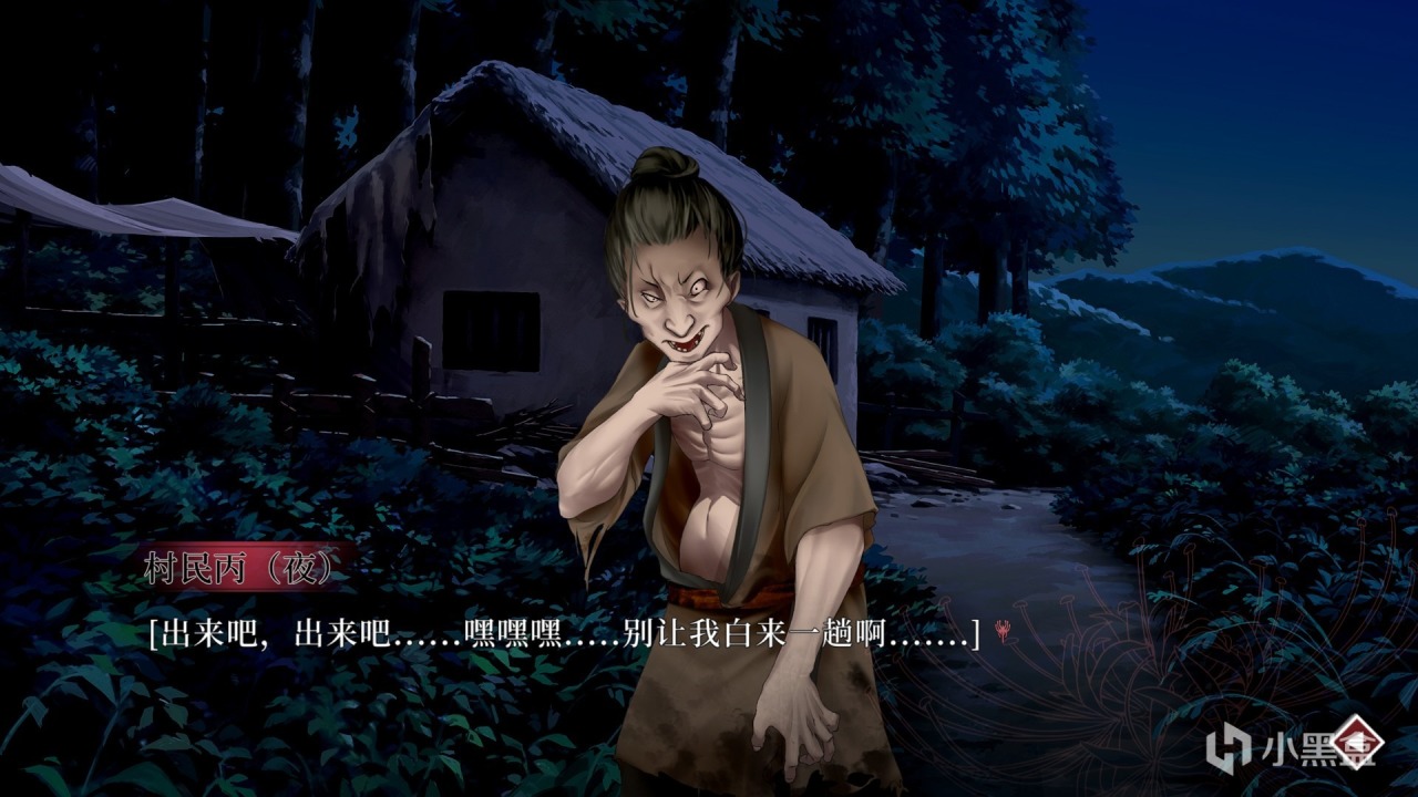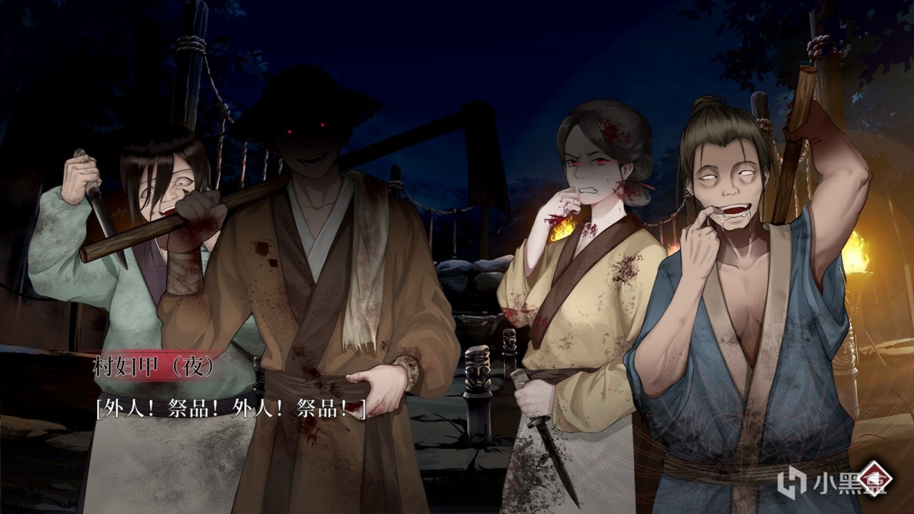 在前期塑造恐怖的故事氛圍,葬花的BGM在加劇代入感有着不可磨滅的功勞。夜晚山上祭壇燃起的火焰、喧鬧的人聲吸引着“我”前往,但如果貿貿然行動必然會導向死的結局,選擇分支的時候前期選擇頭鐵硬剛選項的話就會獲得變豬或變羊的結局,成爲白天村民餐桌上的食物。