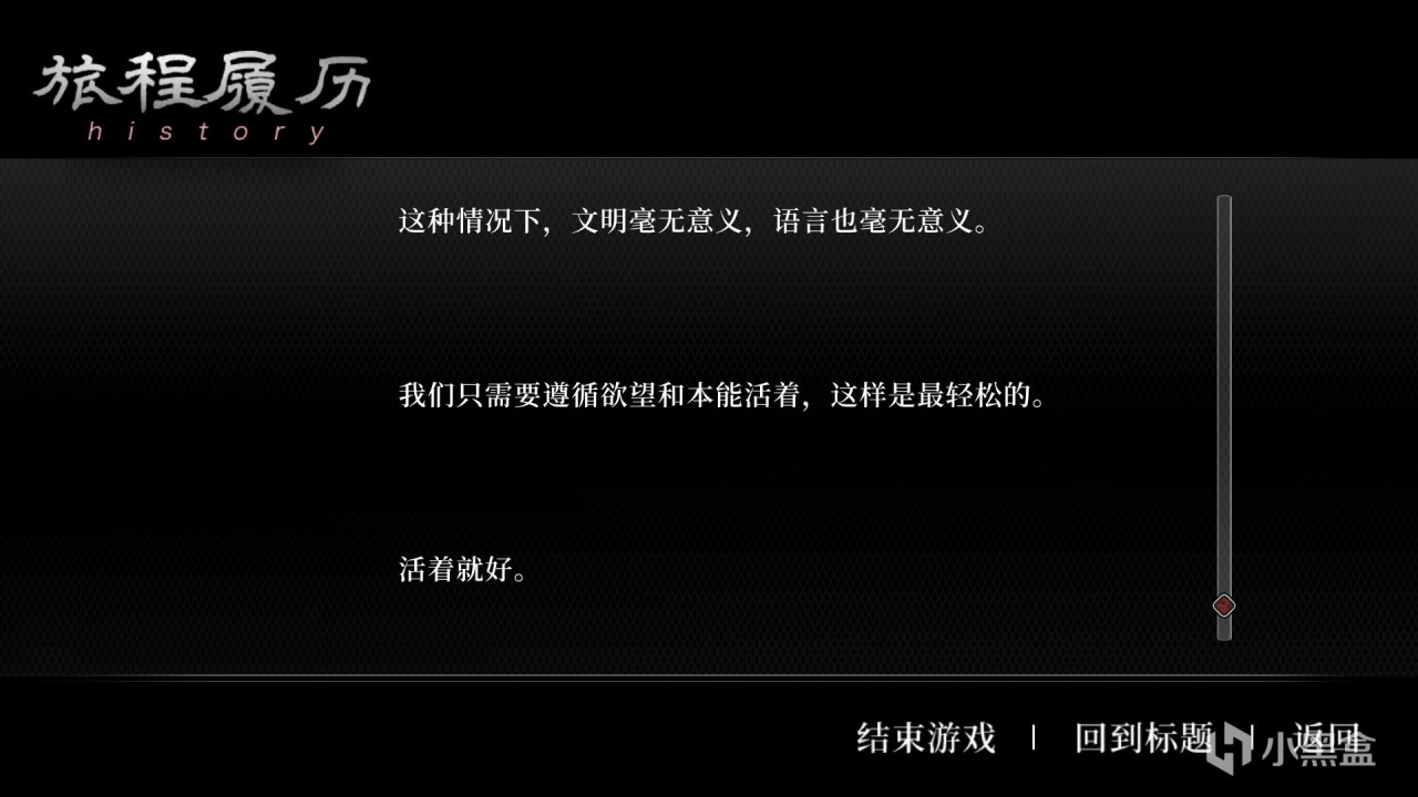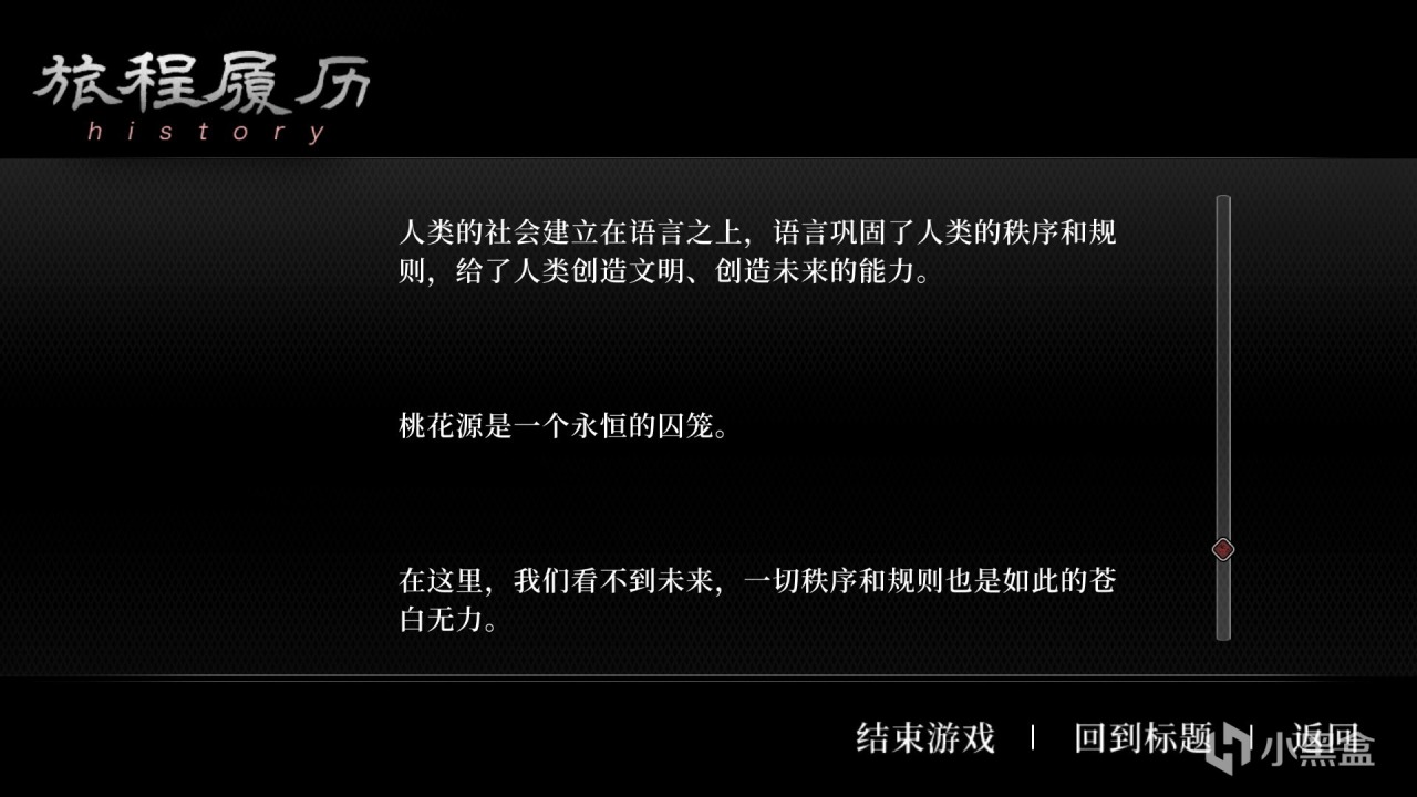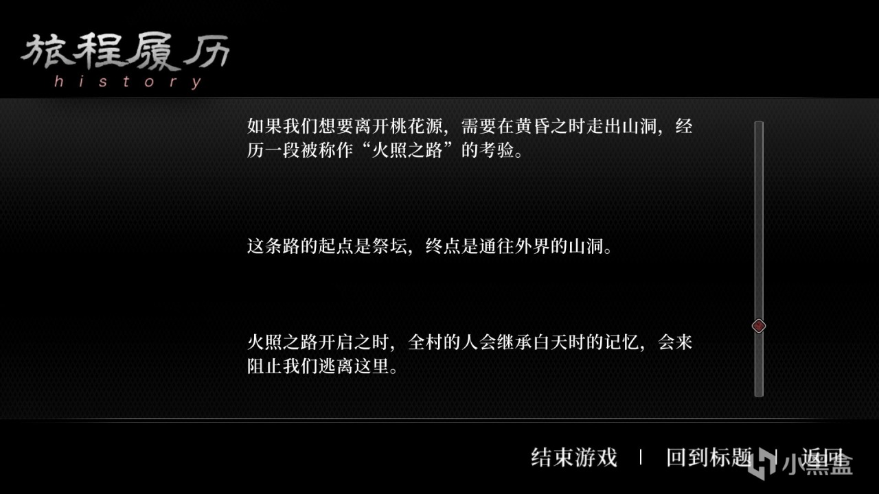 這個結局設定是有些上帝視角的,這一次我並沒有失去前面輪迴中的記憶,我發現問題的根源在於長生石。抱着嘗試的心態,我將長生石服下,長生石消失了,呼鉞村也一同消失了,雙花和村民以意識體形式存在我的腦海中。