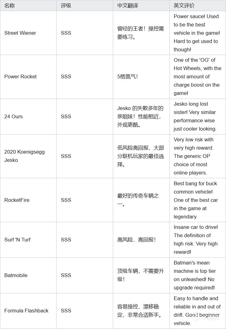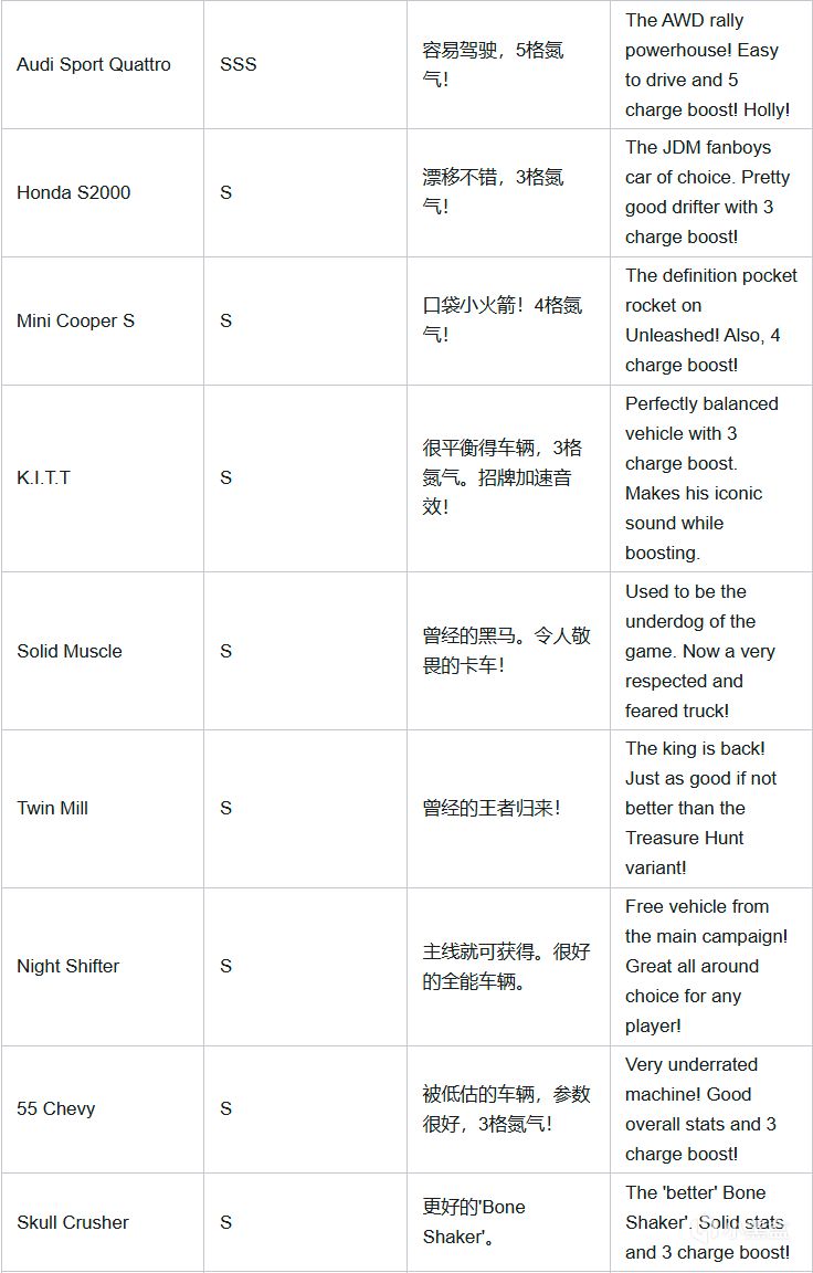 2,车辆等级:普通>稀有>传奇,STH一共11辆车,不能升级。